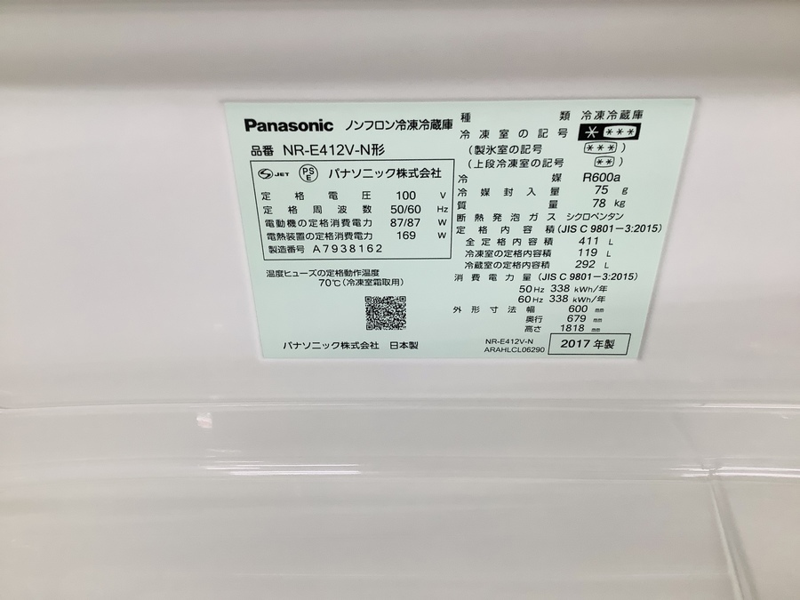 NR-E412V 2017年製 買取致しました!