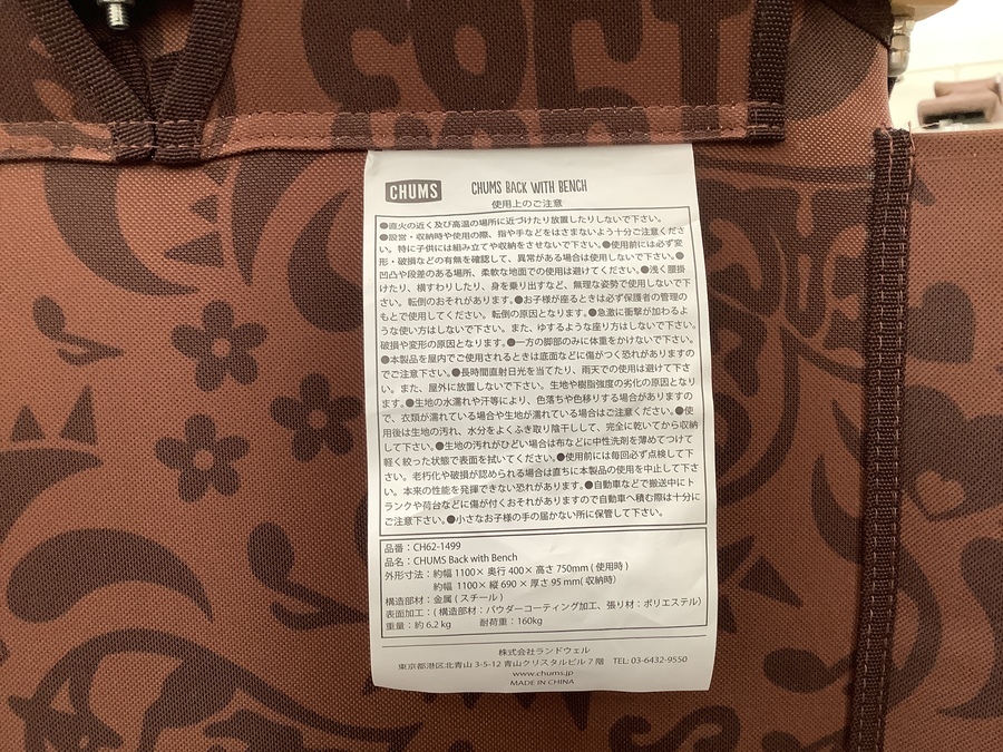 CHUMS(チャムス)好き必見!バックウィズベンチLOVE&PEACE(ブラウン) 買取入荷いたしました!