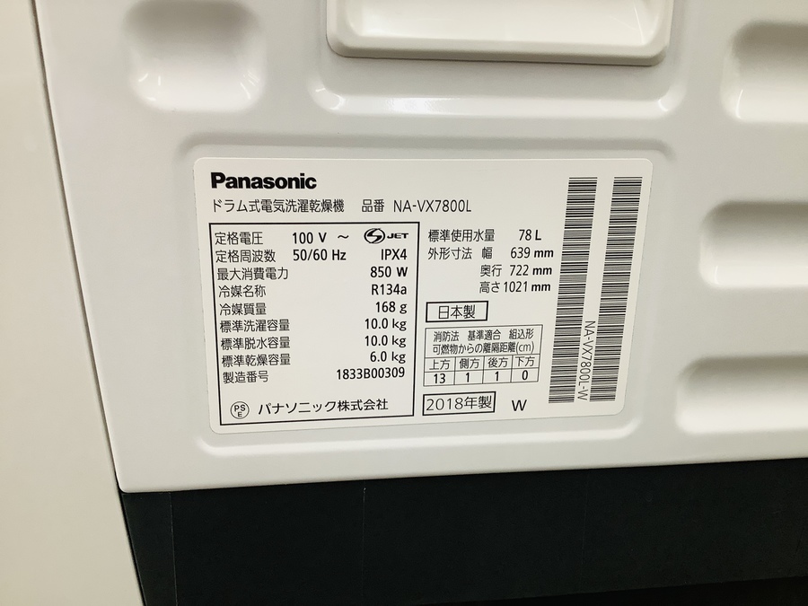 商品名:ドラム式洗濯機 NA-VX7800L