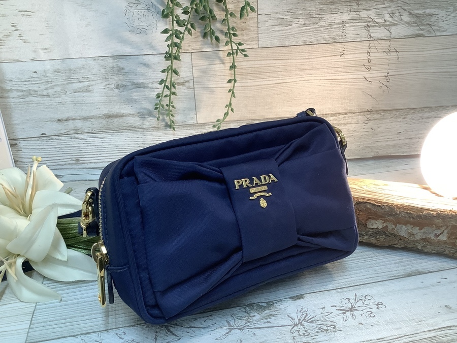 ネイビーを基調とした女性らしさのある『PRADA』ショルダーポーチ♪