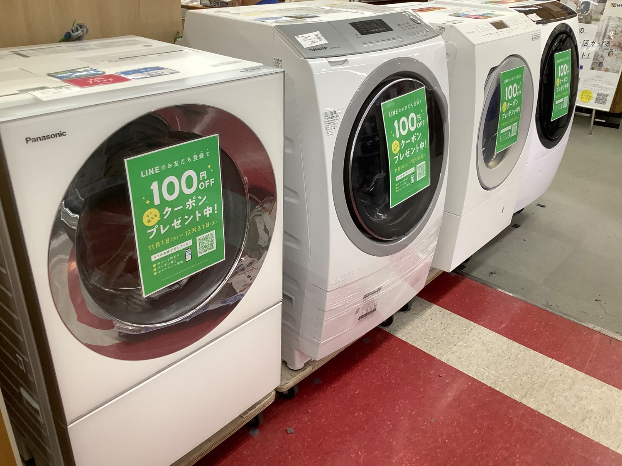 只今たくさんのドラム式洗濯機をご用意しております。