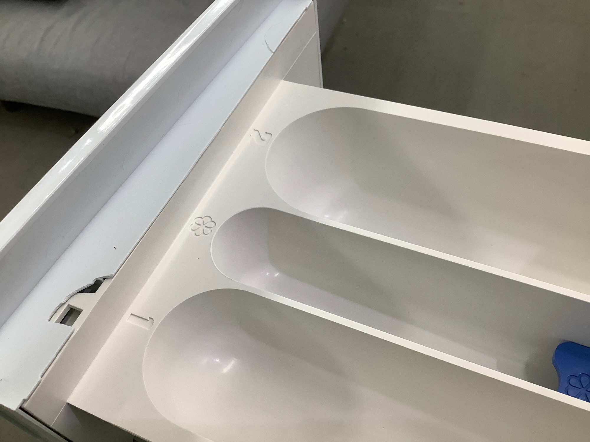 状態:洗剤入れパーツ手前に割れ有