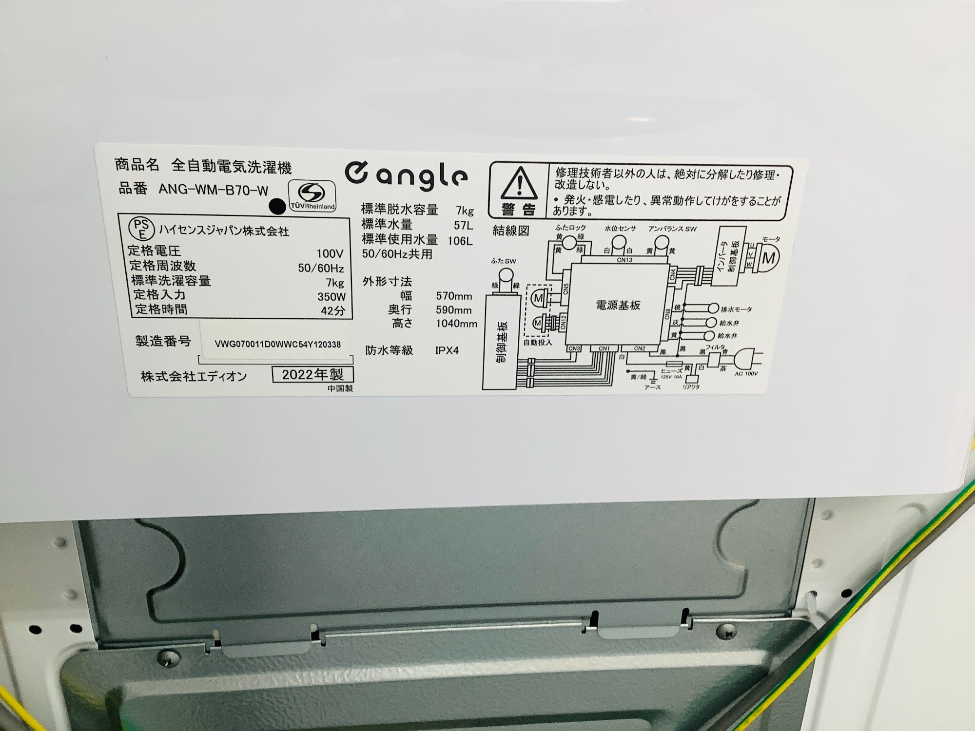 e angle(イーアングル)全自動洗濯機 ANG-WM-B70 2022年製入荷致しました!