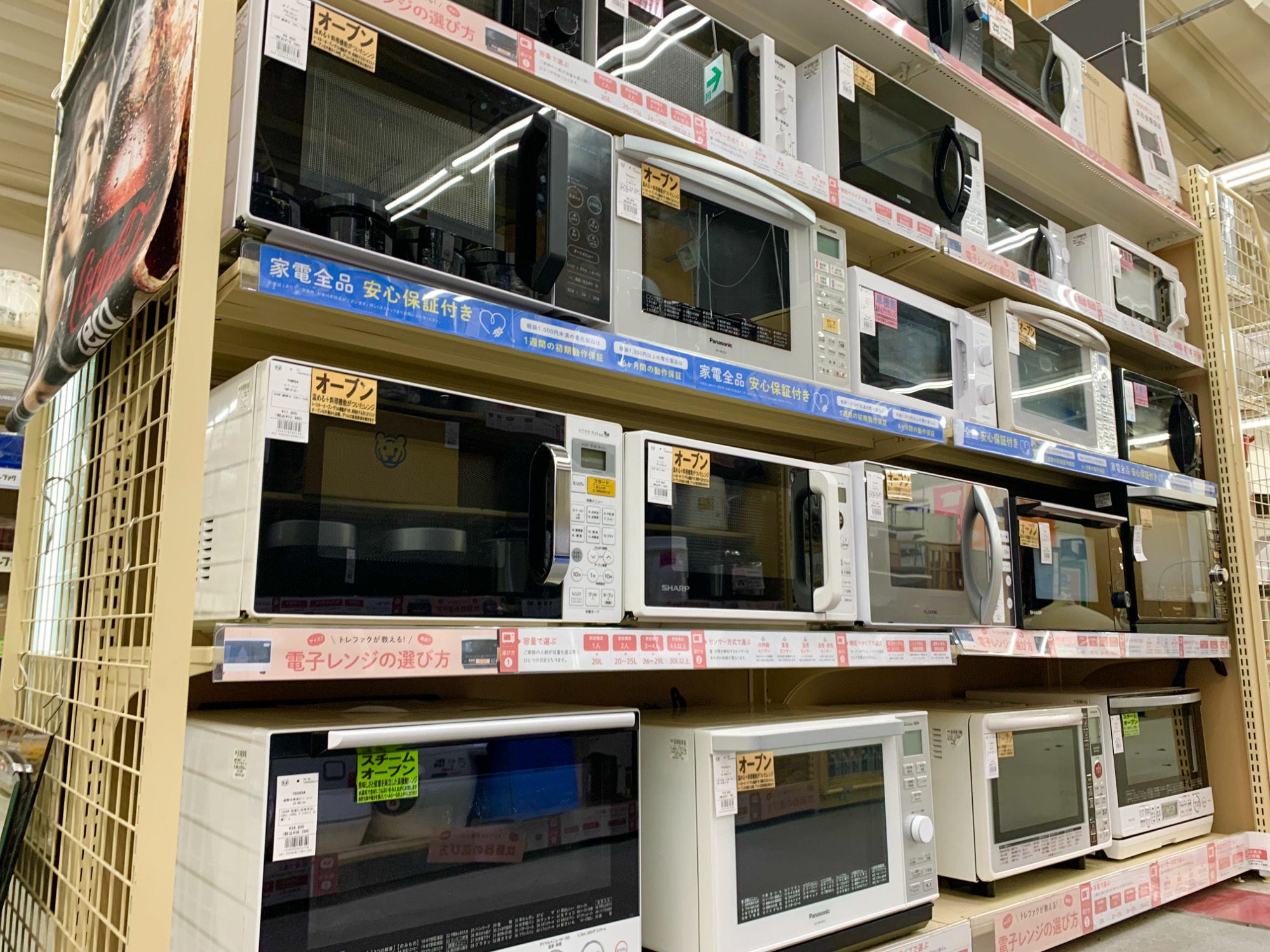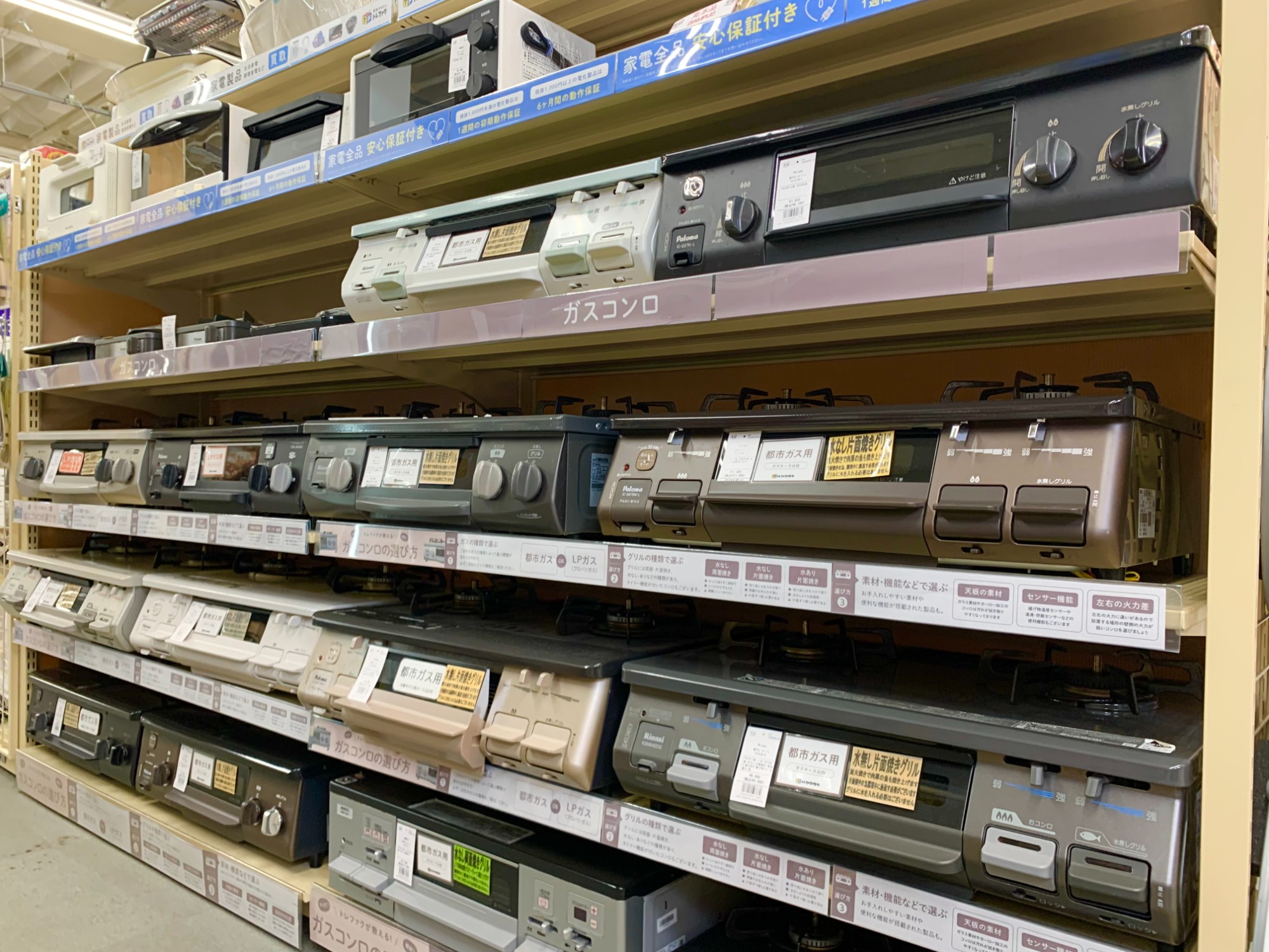 冷蔵庫、洗濯機、電子(オーブン)レンジ、炊飯器、ガステーブル、掃除機。