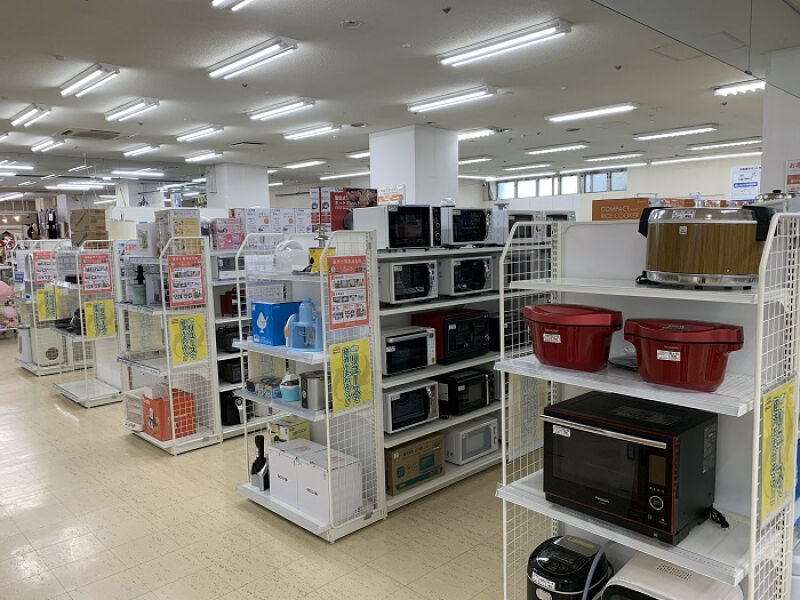 1Fには、冷蔵庫、洗濯機、レンジなどの家電製品を取り揃えております。