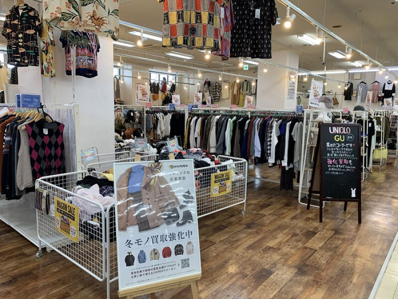 1F衣類コーナーは、自慢の品揃え!夏物買取強化中!キッズ衣類も買取強化中!
