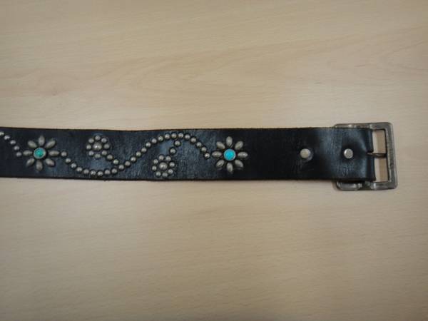 レザーのベルトには花の形にスタッズがあしらわれ、