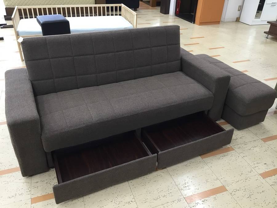 【1点限り】オットマンと引き出し付き!二人掛けソファーベット入荷☆