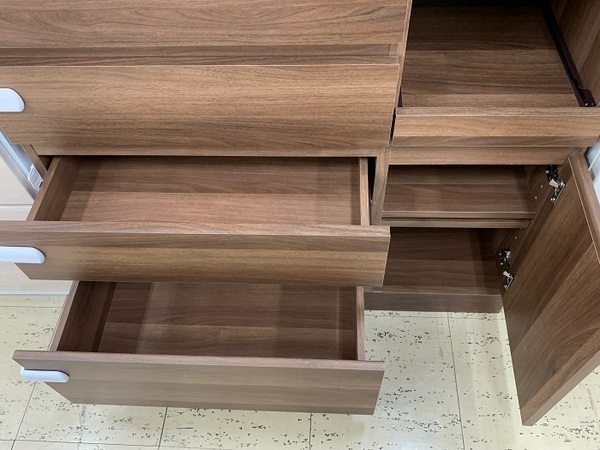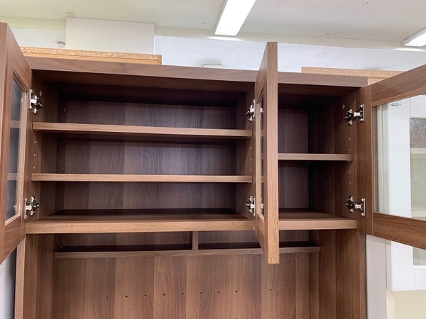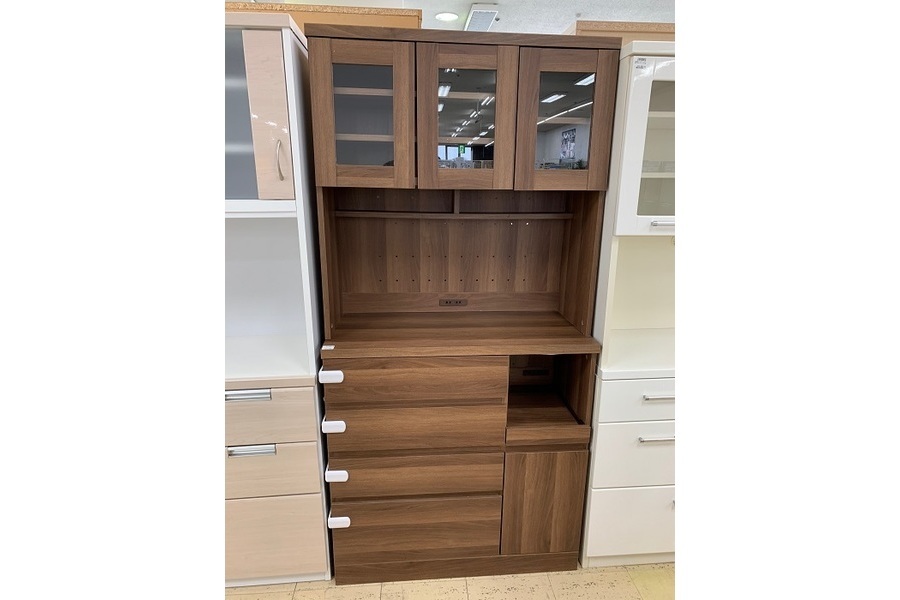 【郡山安積店】 木目調の3枚扉カップボード展示中!