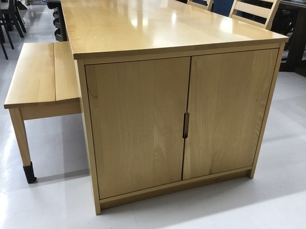 シンプルなダイニングチェアとベンチ状の椅子の組み合わせが特徴的なダイニングセットになります!!