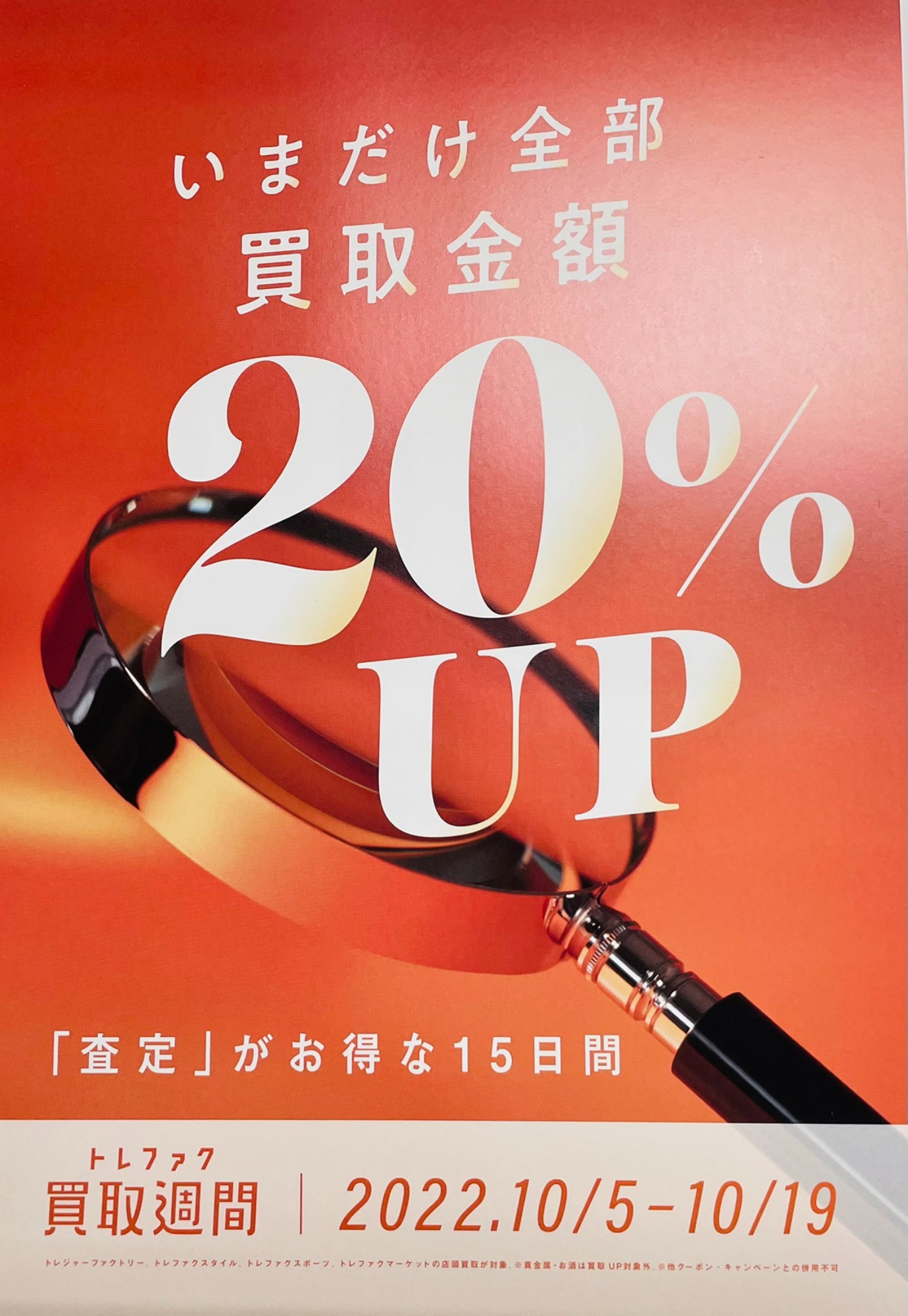 期間内は店頭にお持ちいただいた買取のお品物が全て20%UPとなります!!