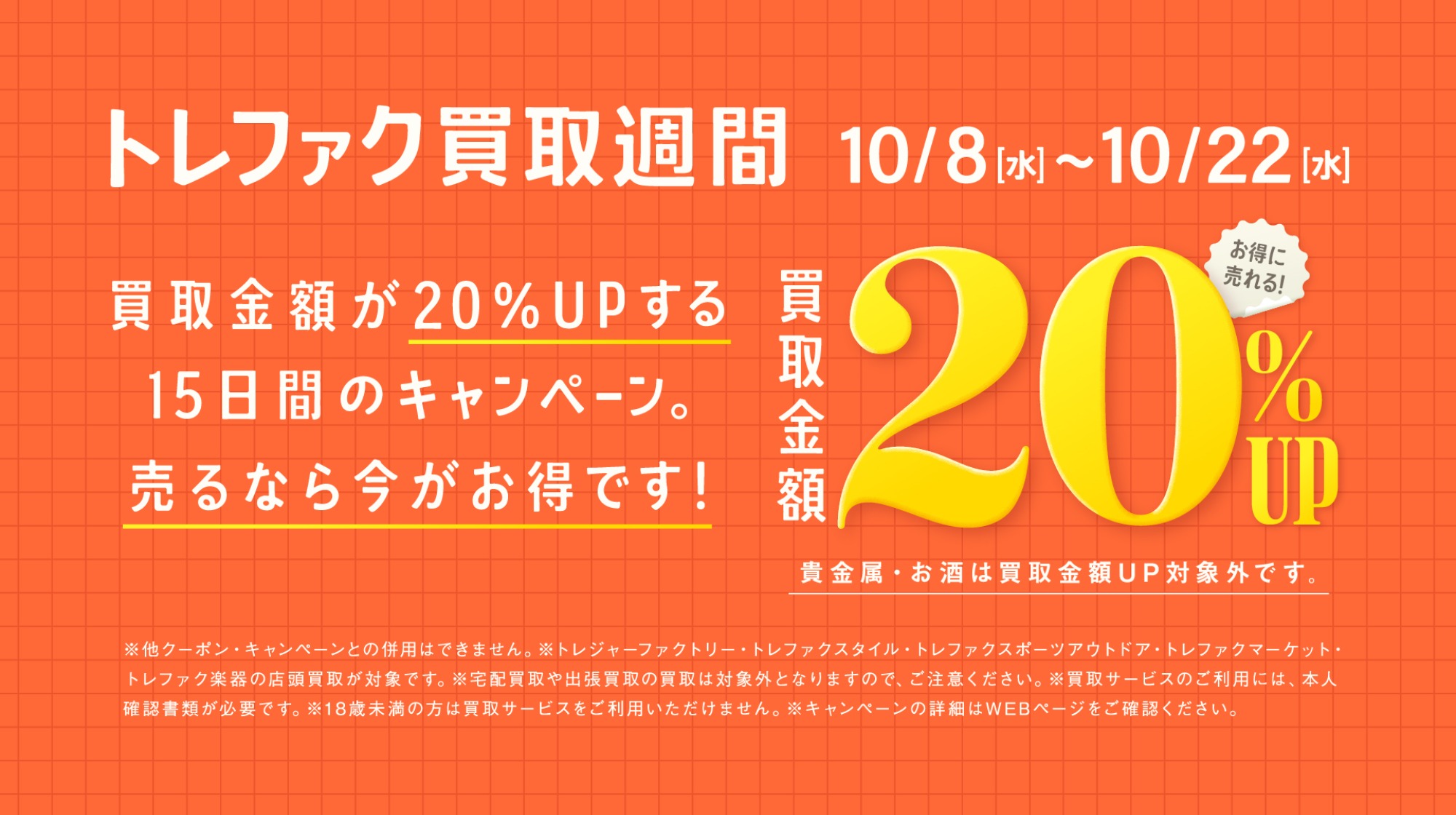 期間中、お持ち込みいただいたお品物を20%UPで買取します!