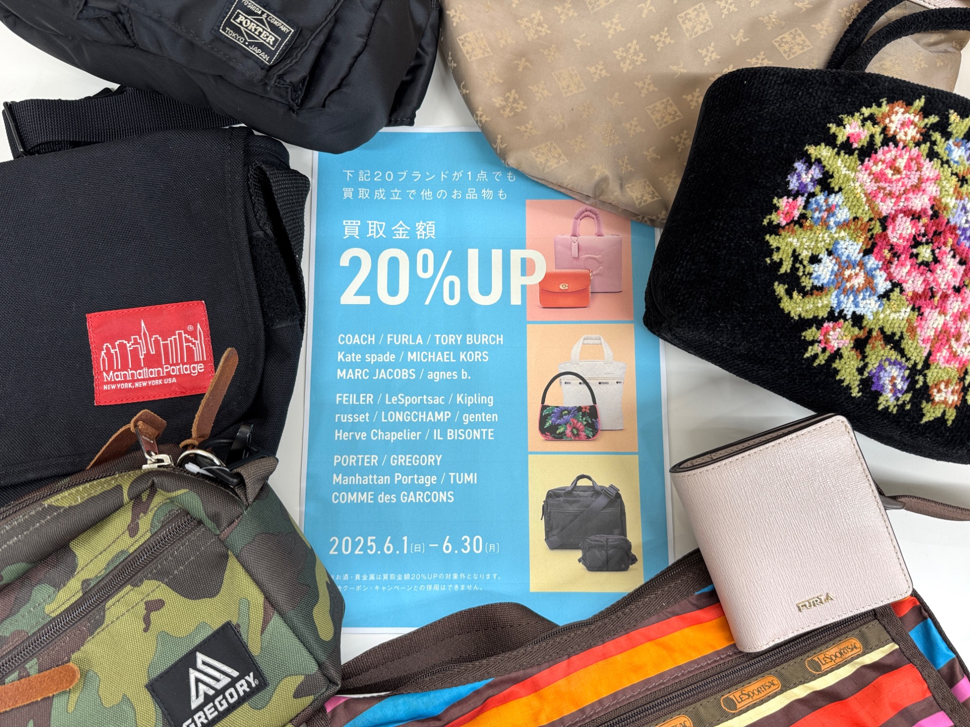 6月はブランド20選買取20%UPキャンペーン!PORTER、COACH、FURLAなどカジュアルブランド買取強化中!