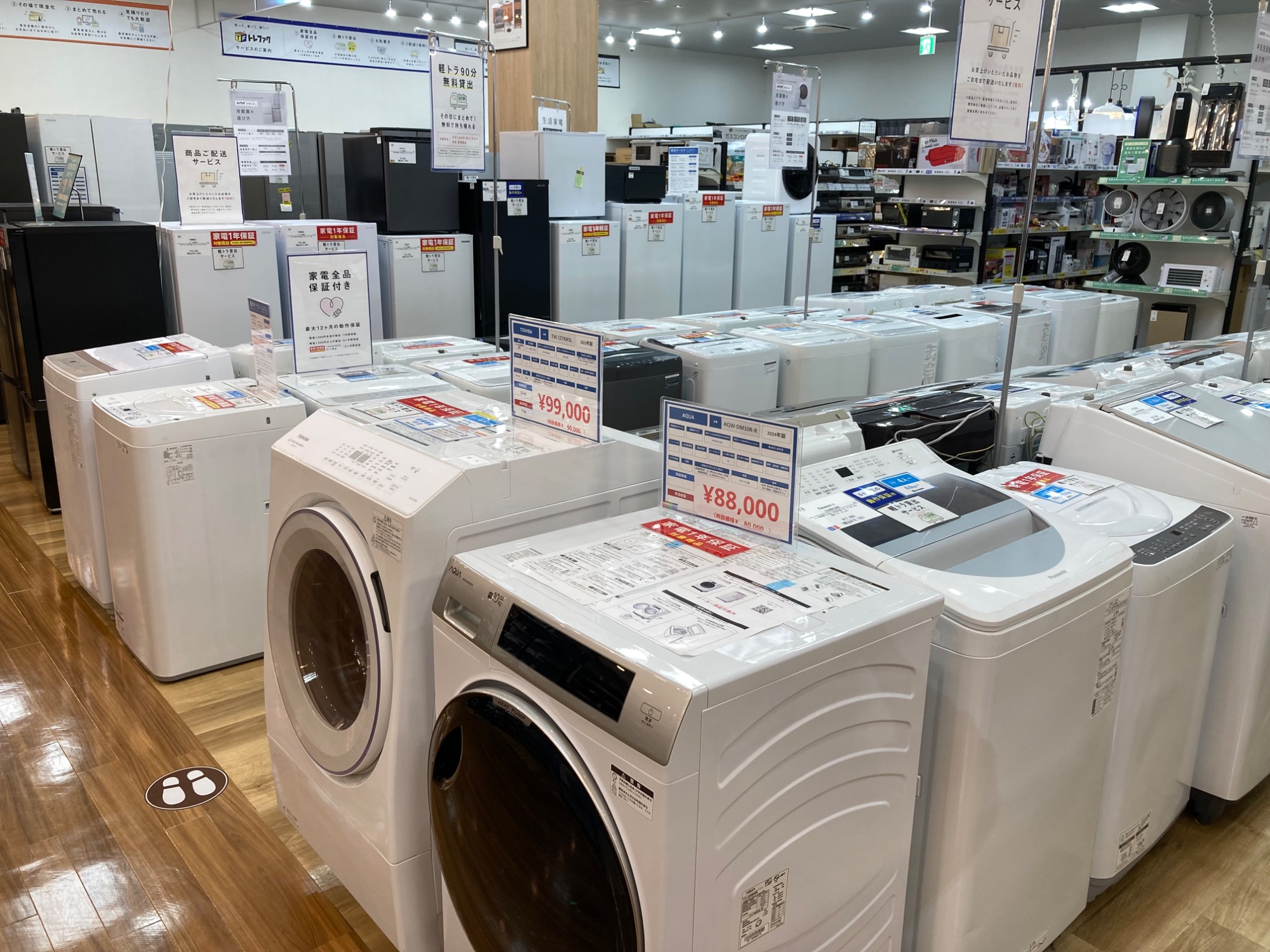 冷蔵庫、洗濯機展示台数50台以上!