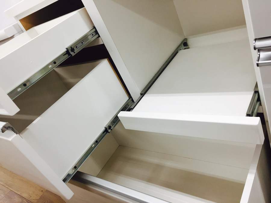 スライドレール仕様で引出しの出し入れ楽々♪