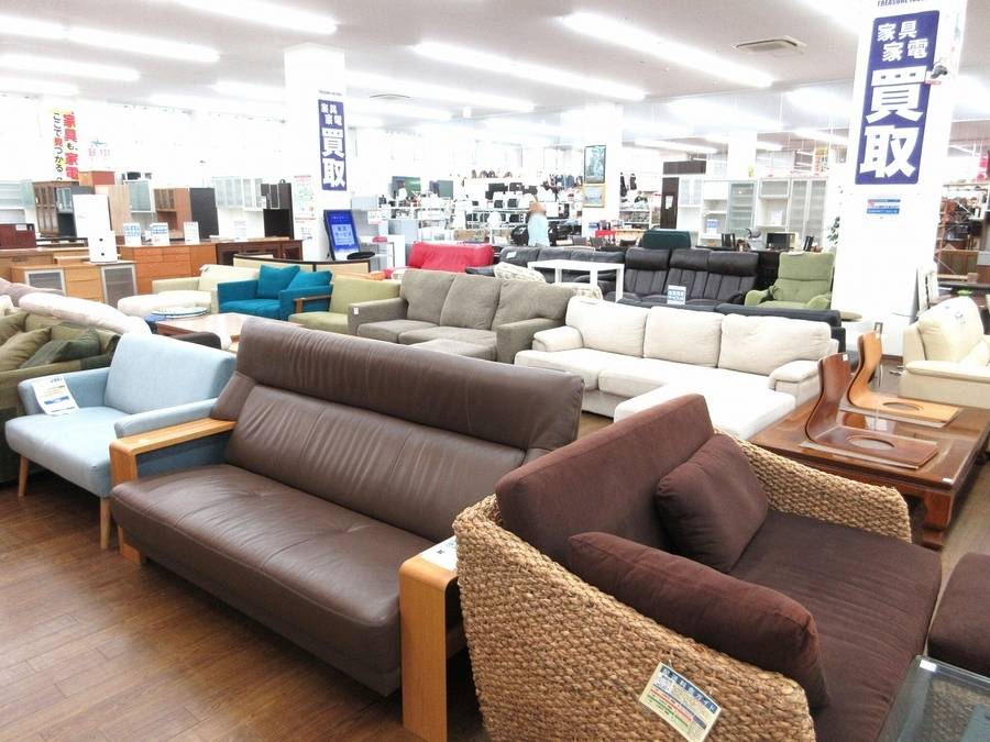 広い売り場、豊富な品揃え、多摩地域の中古家具は
