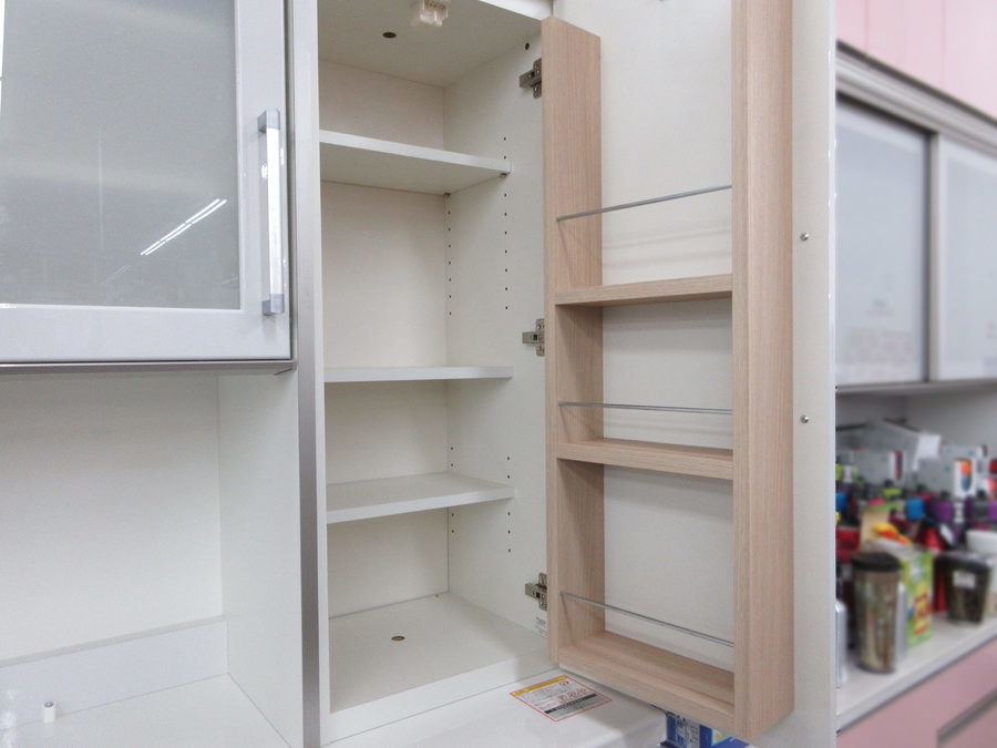 右側の戸棚は調味料などをしまうのにピッタリ。