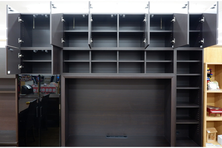壁面収納が充実!上部はプッシュ式扉の収納。