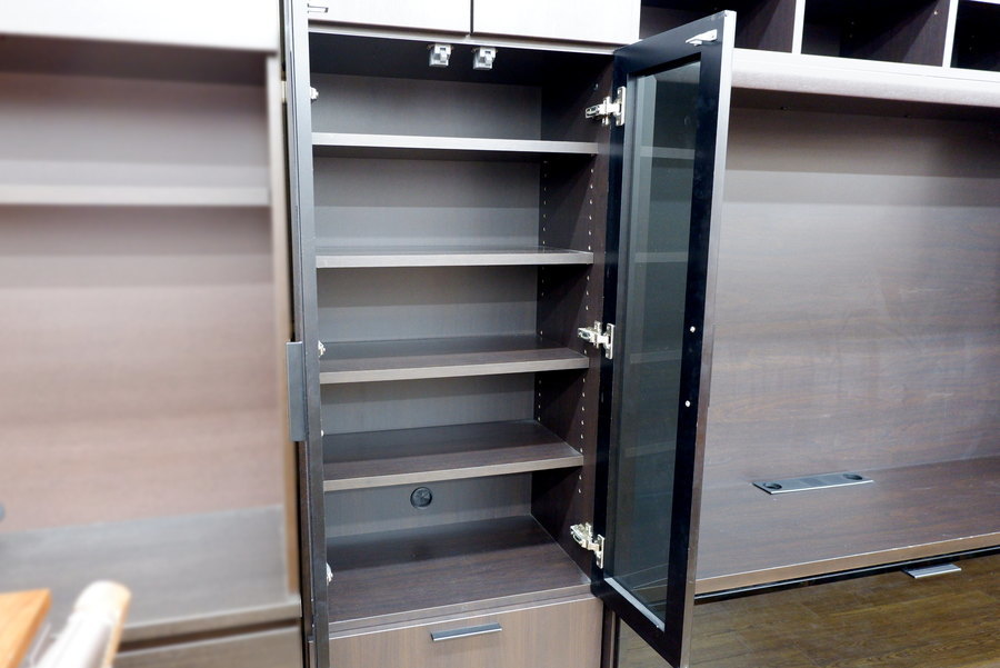 左側にはガラス扉の収納