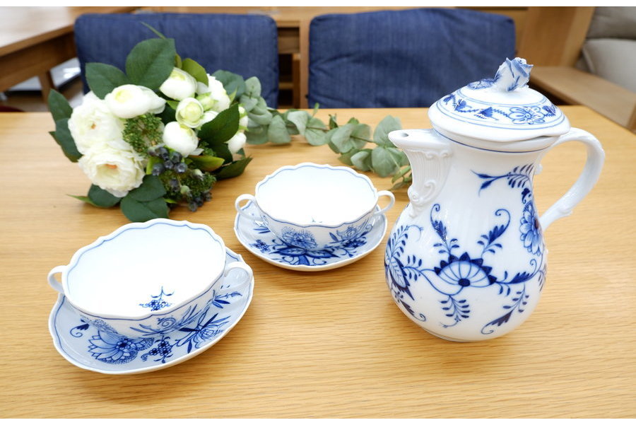 MEISSEN(マイセン)ブルーオニオンのコーヒーポット、スープカップ&ソーサーをご紹介します。