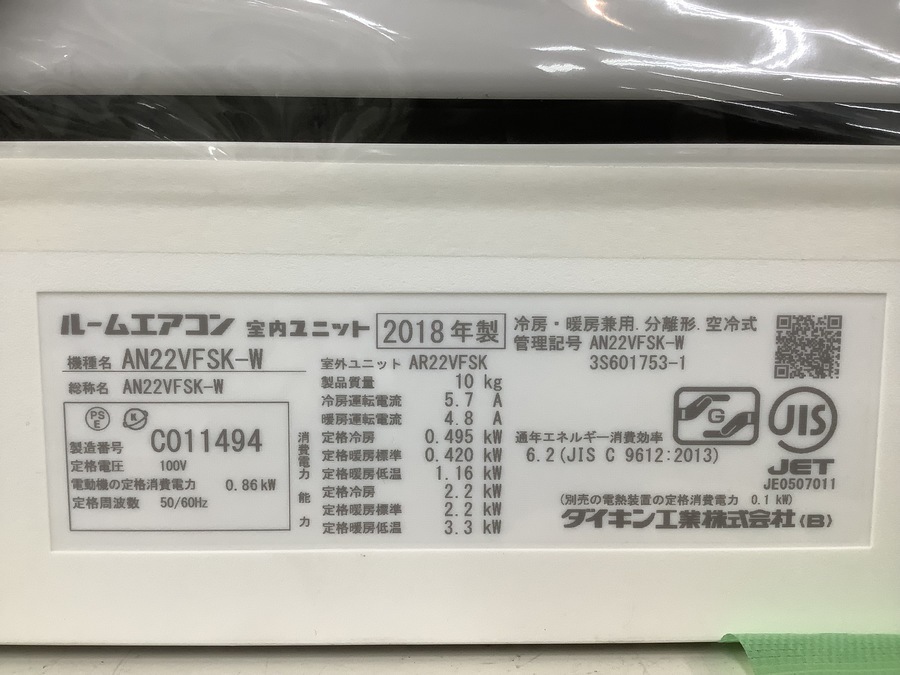 冷房能力:2.2kw
