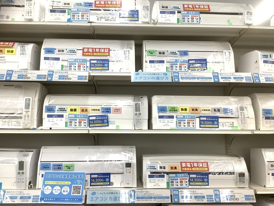 【夏物家電コーナー】エアコン大量展示中!本格的な暑さが来る前にご準備を!