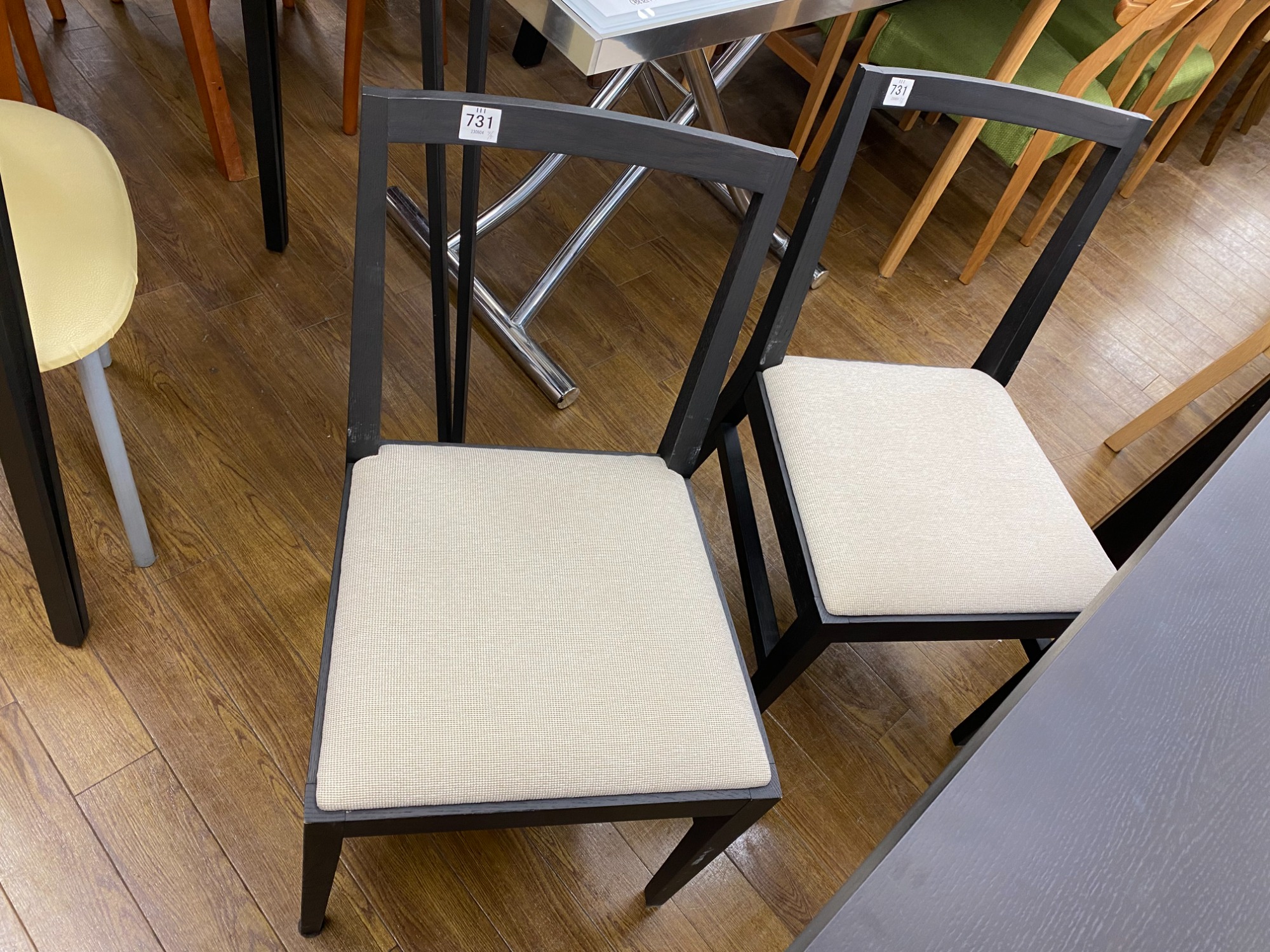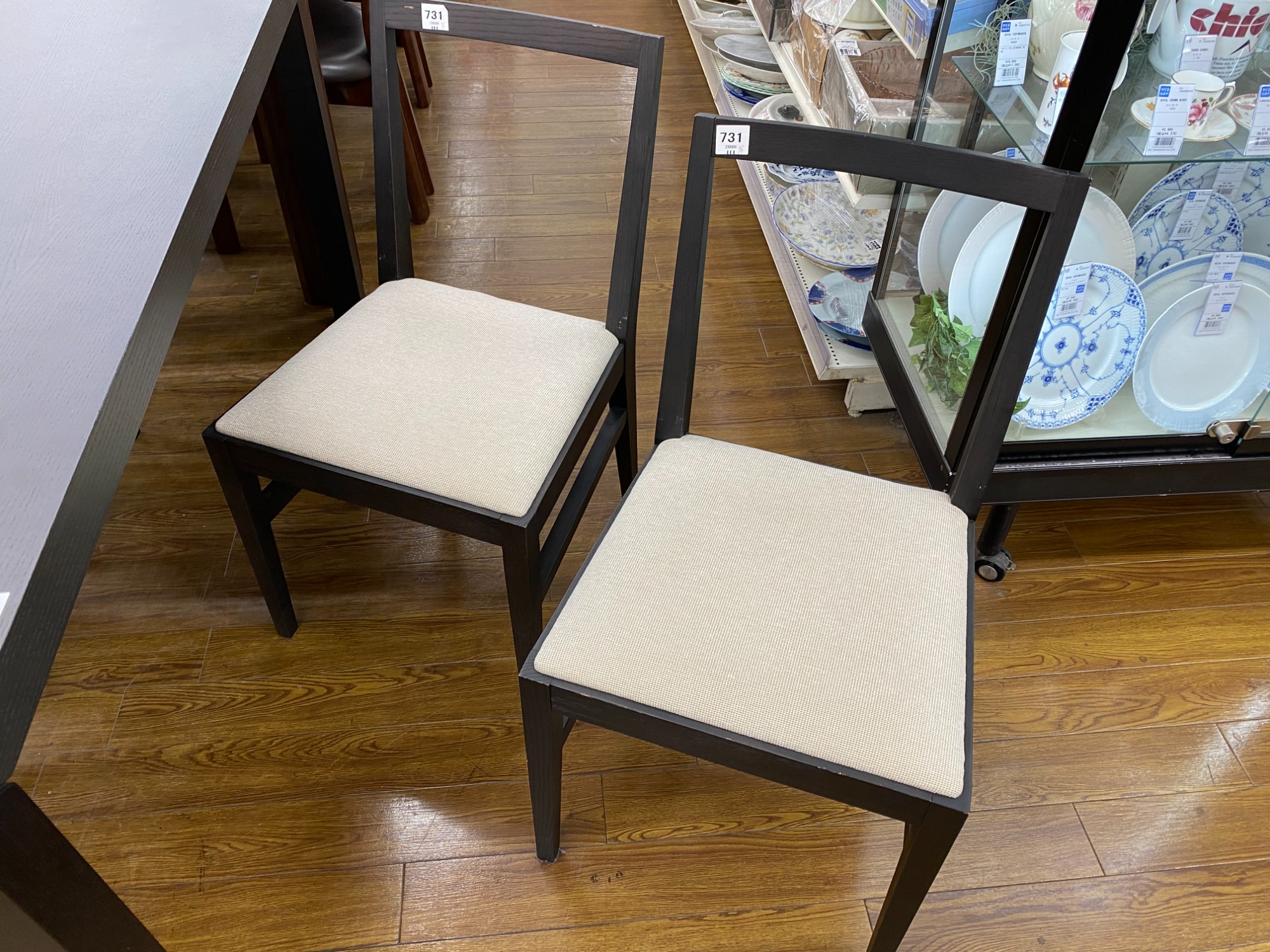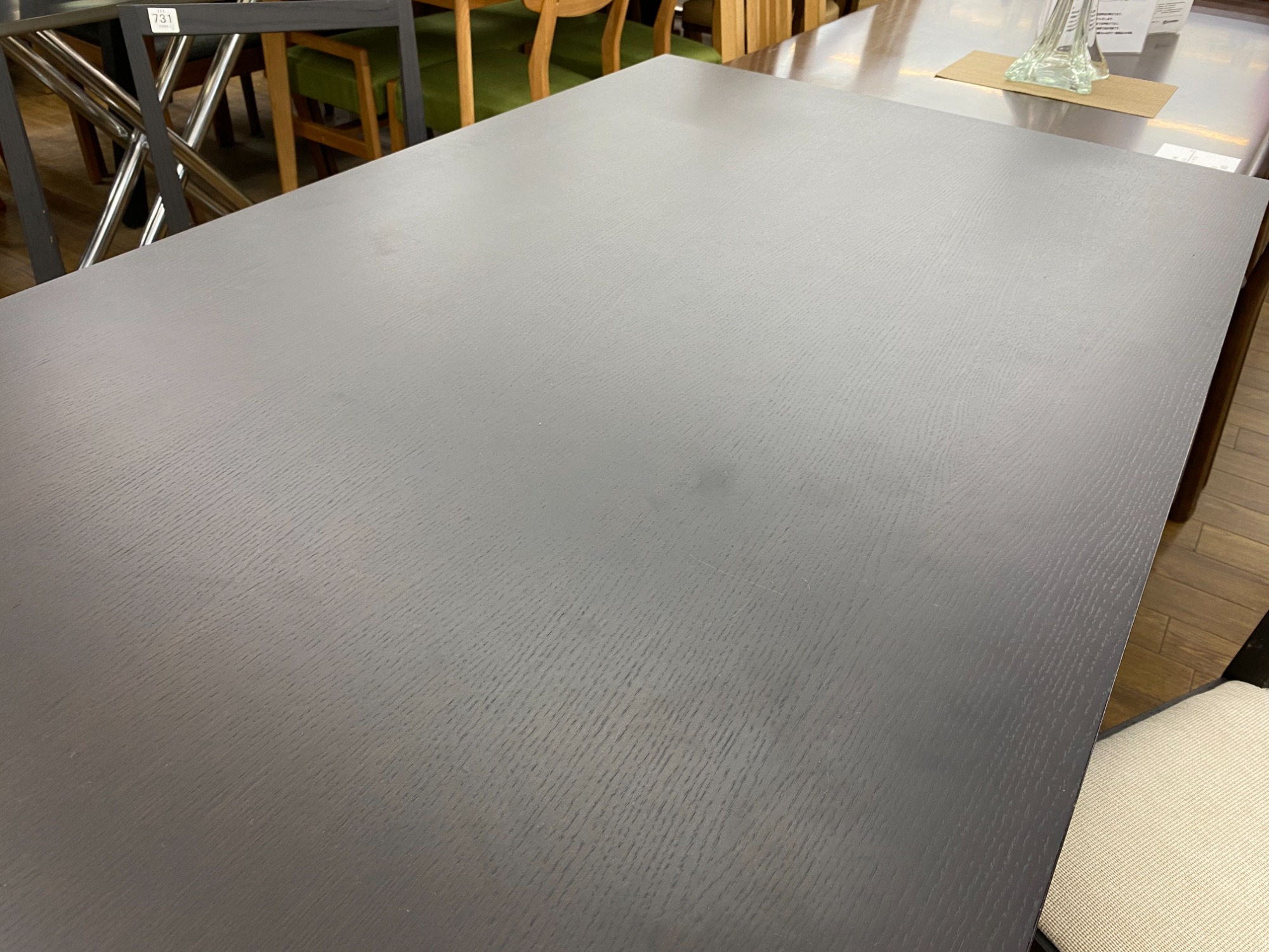 ブラックの木目がシックなダイニングセットでございます。