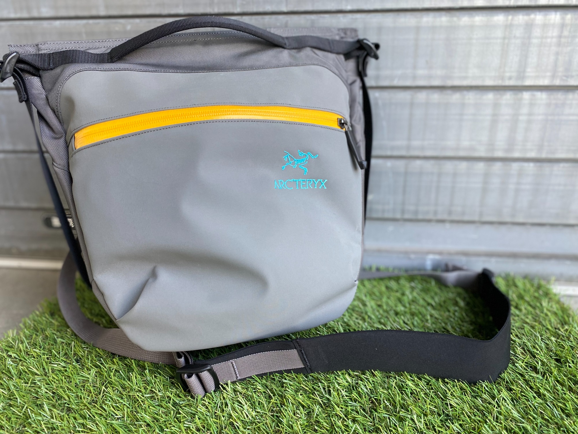 こちらのショルダーバッグは、グレーとイエローを使用しており、ブルーでArc'teryxのロゴがデザインされております。固めの素材を外側利用しており、中に重いものや硬いものを入れても身体に影響が無いように内側にはクッションがあります。バッグの内側は小さなディティールからは想像できない要領で、小さなポケットやジッパー付きのポケットまで、小物の収納にまで優れております。