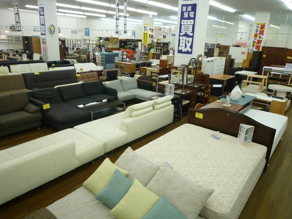 当店は売場のおよそ半分が家具展示スペース。