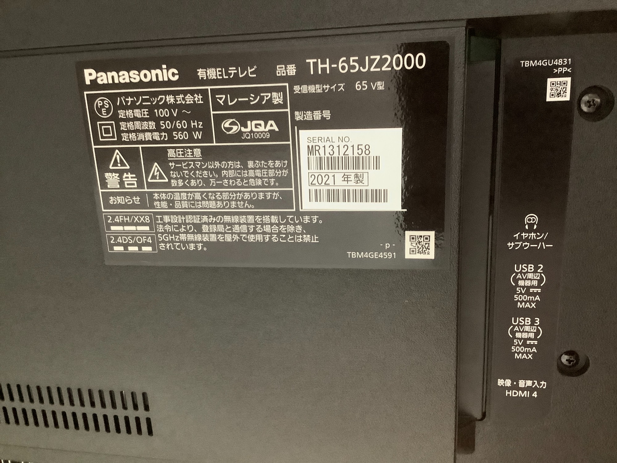 商品名 :4K有機ELテレビ