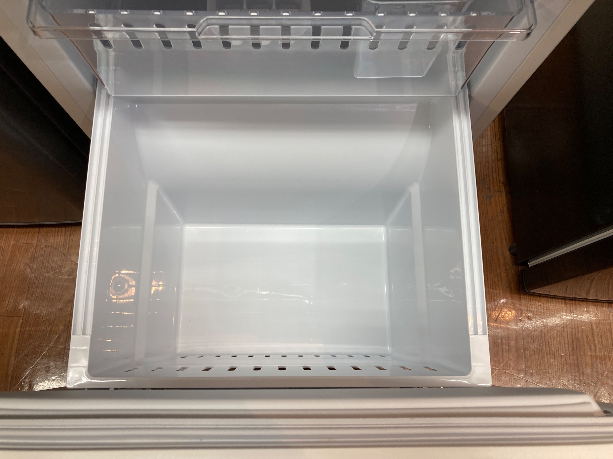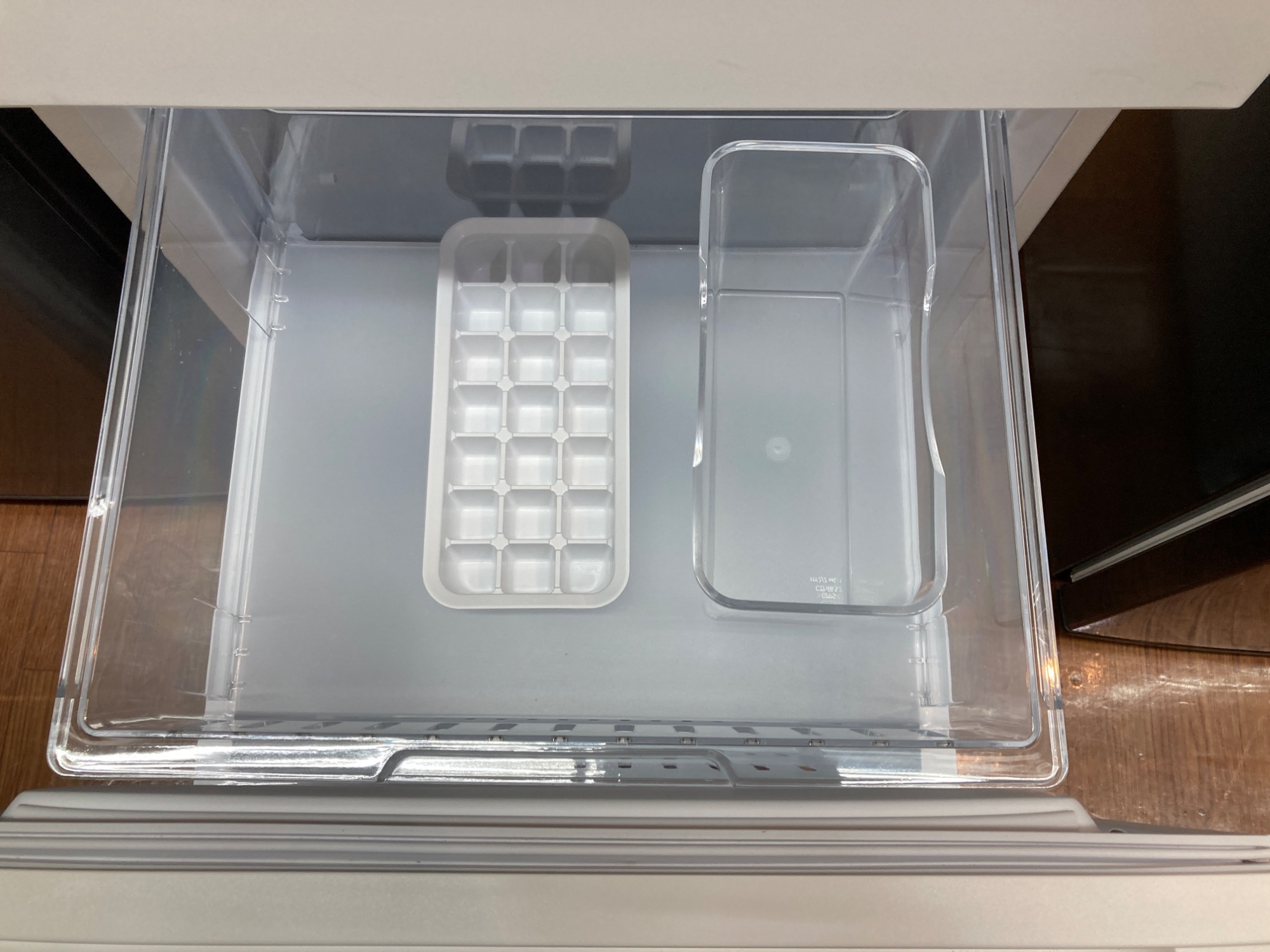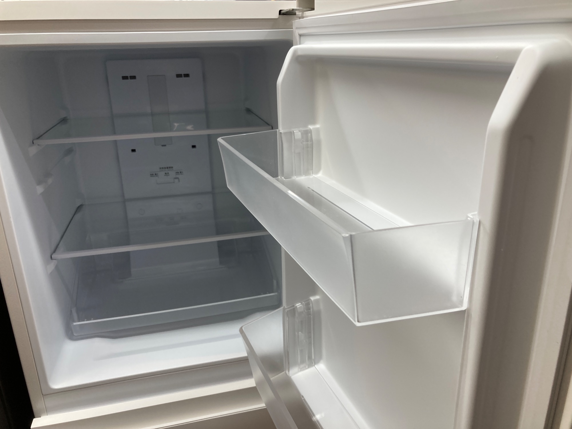 上部が冷蔵、下部が冷凍となっており棚板2枚の3溝なので少しですが