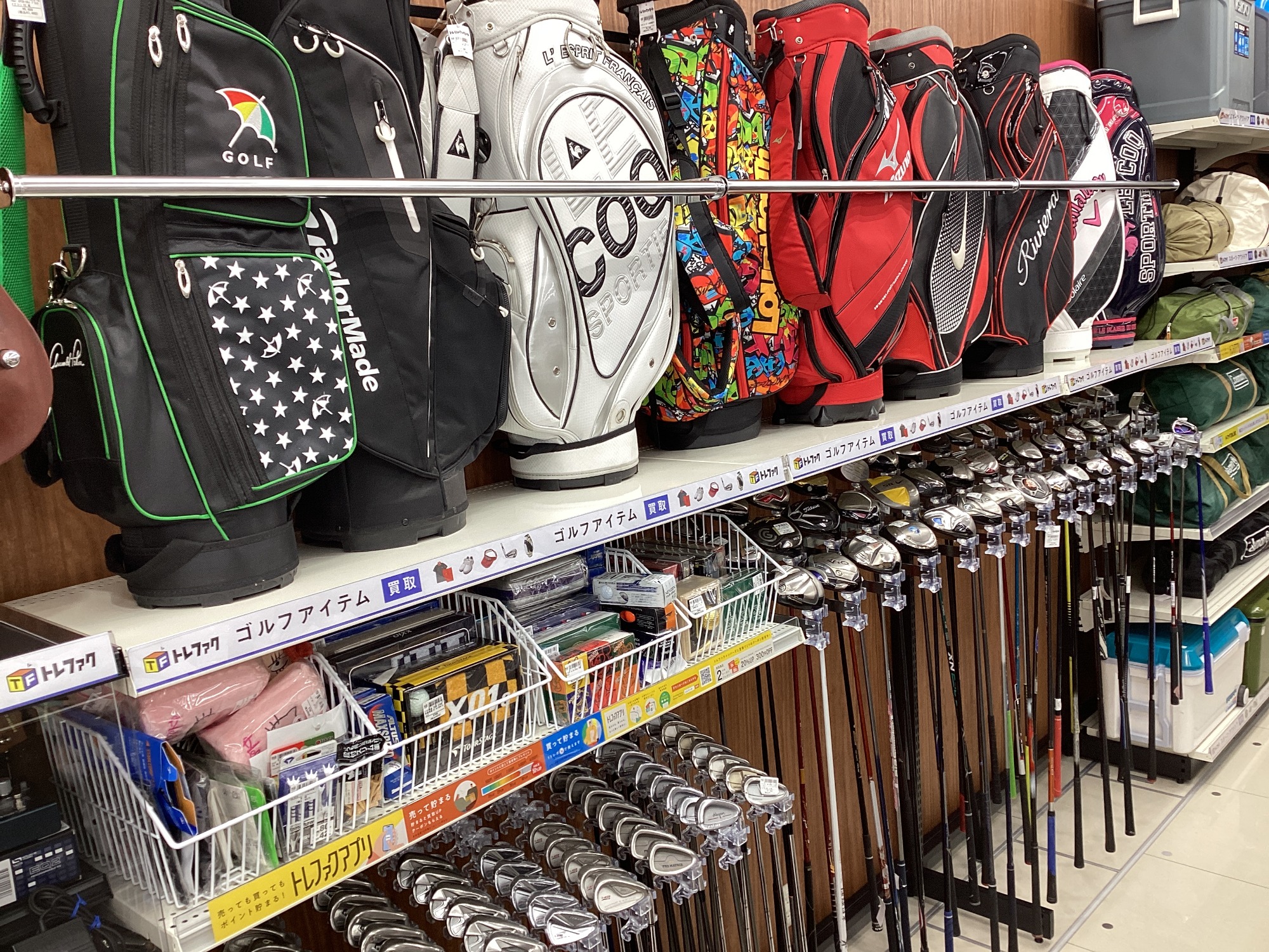 ゴルフクラブやパター、ゴルフウェアなどのゴルフ用品が続々と売り場に陳列されております!