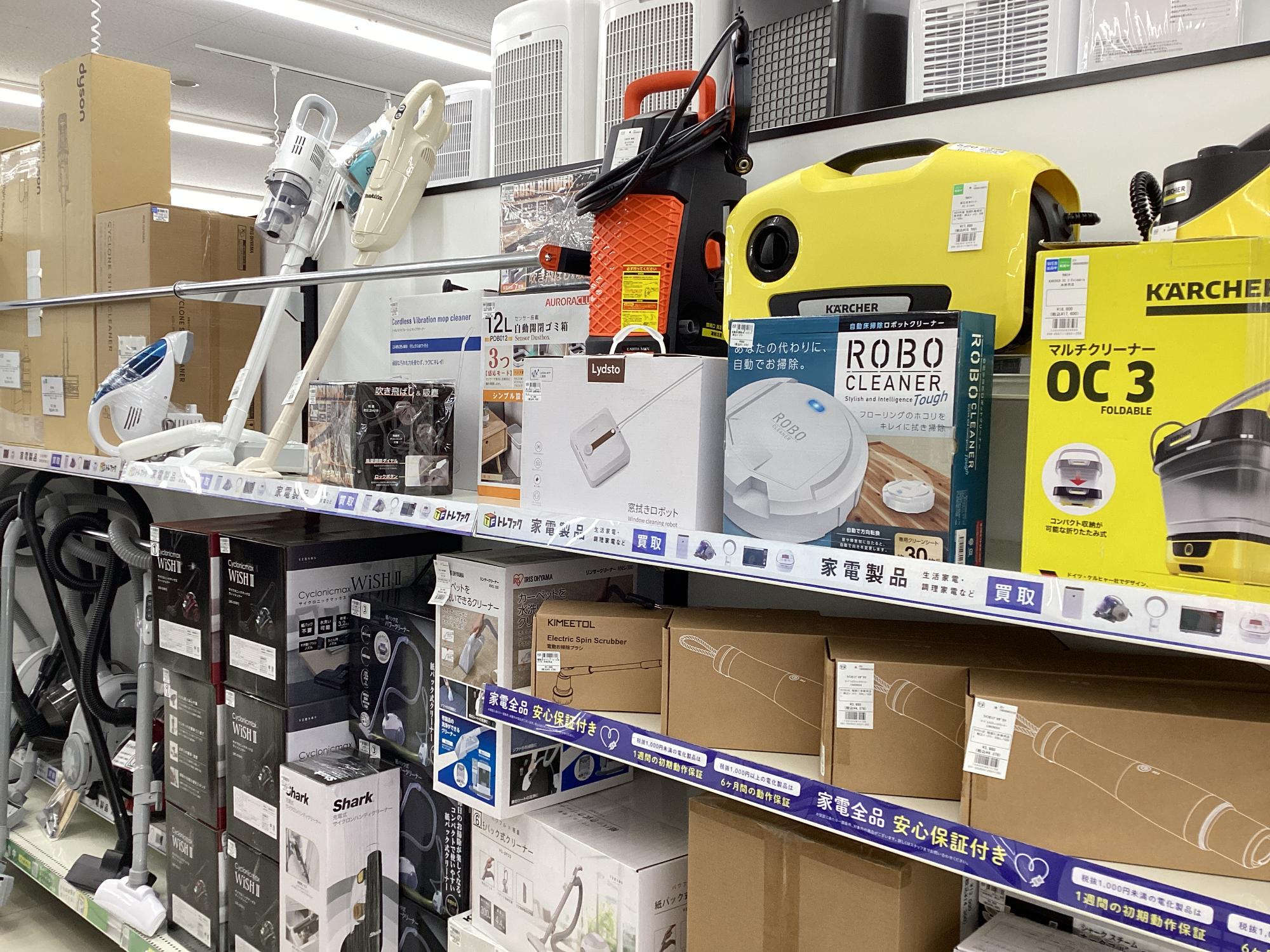 当店では掃除機・洗浄機の他に扇風機やヒーターの季節家電、エアコン・洗濯機・冷蔵庫など