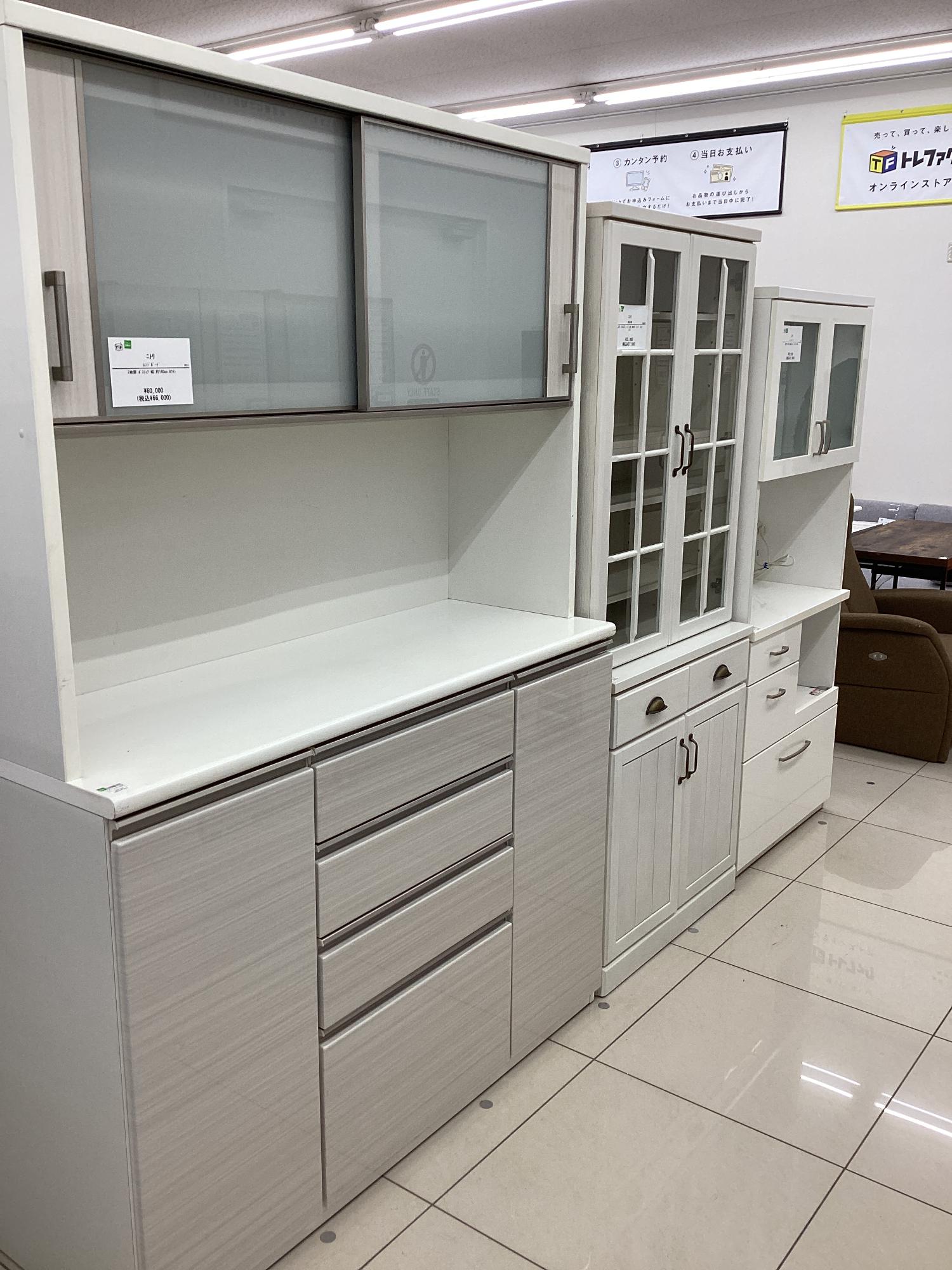 当店では春の新生活に向けて、ソファーやテレビ台、テーブルや食器棚などの