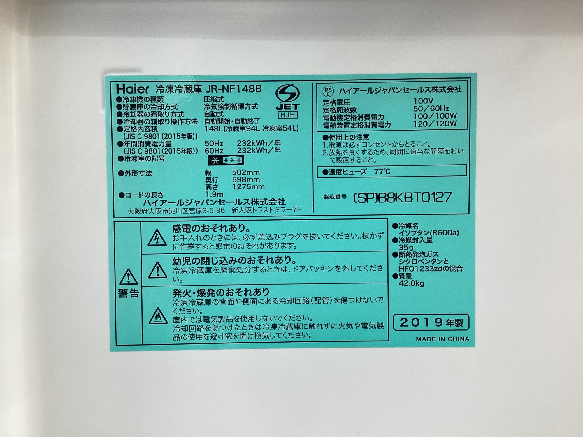 メーカー:Haier(ハイアール)