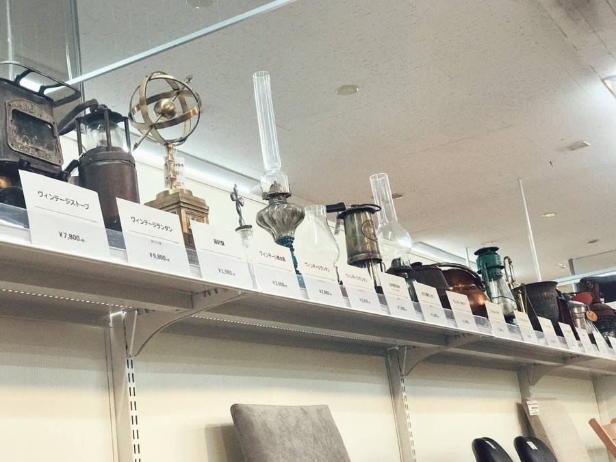 壁沿いにはお洒落なヴィンテージ雑貨や小型のオススメ家具が展示されております。