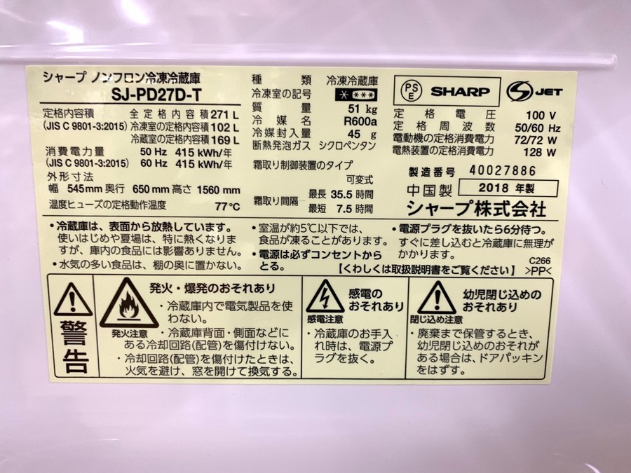 【型番】SJ-PD27D-T