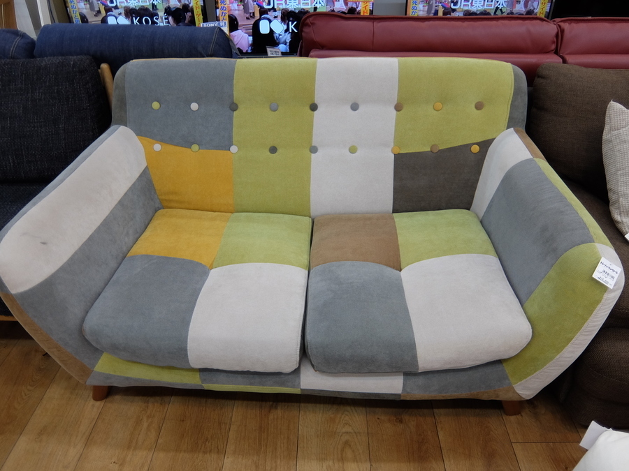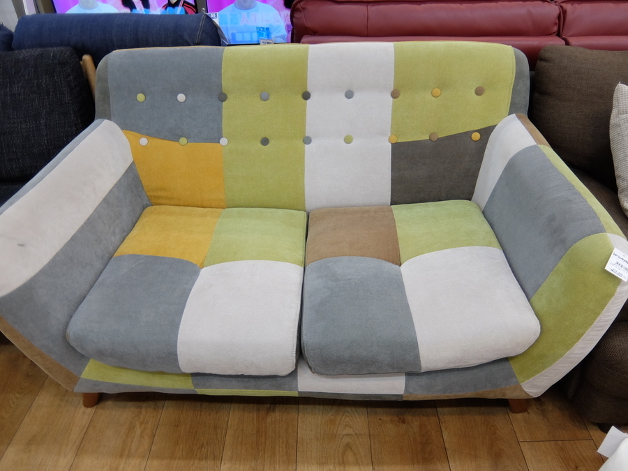 色味がかわいい2人掛けパッチワークソファー買取入荷!【幕張店】