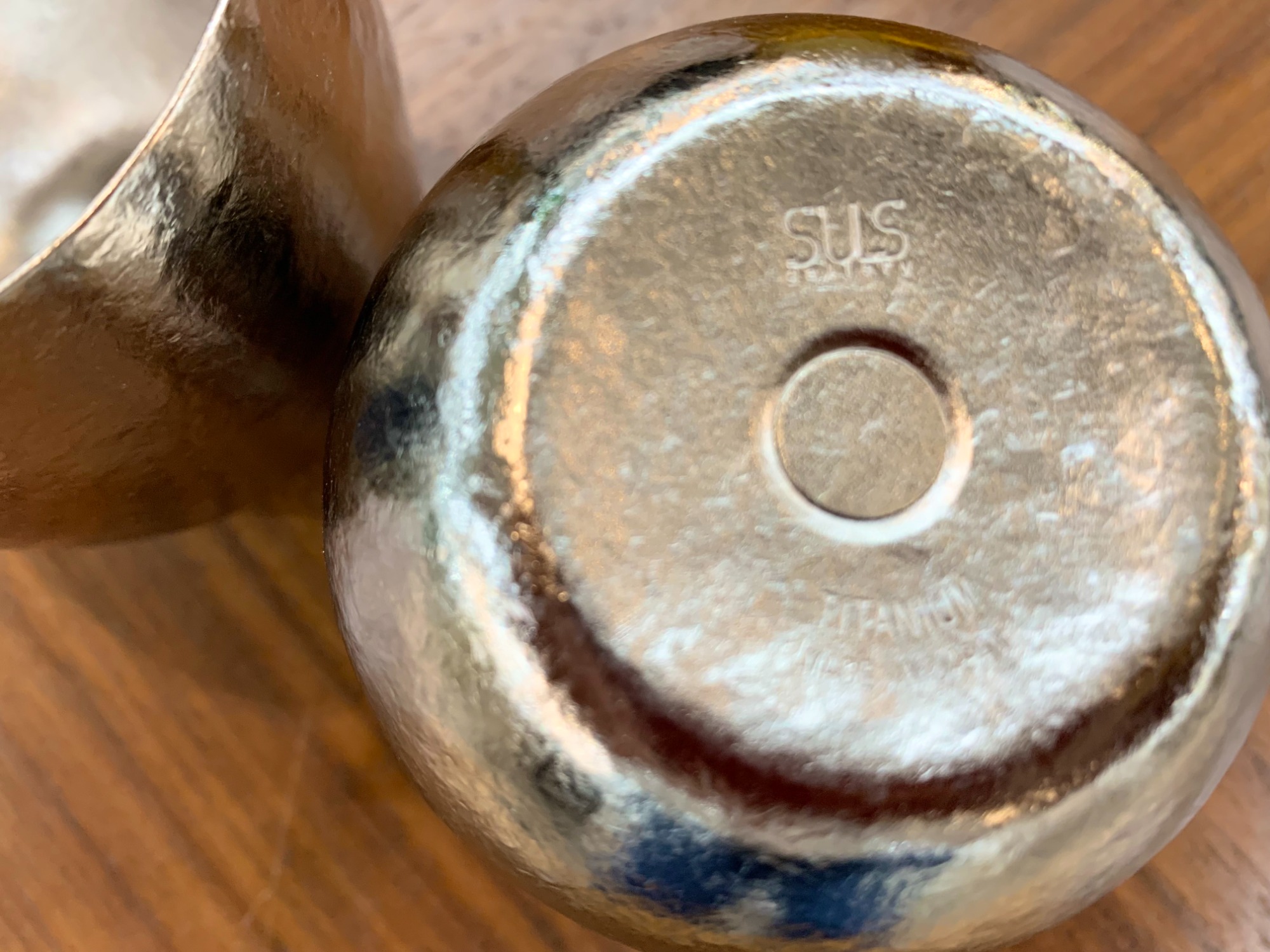 チタンという金属製でありながら、焼き物の様な独特の風合いを持ち、