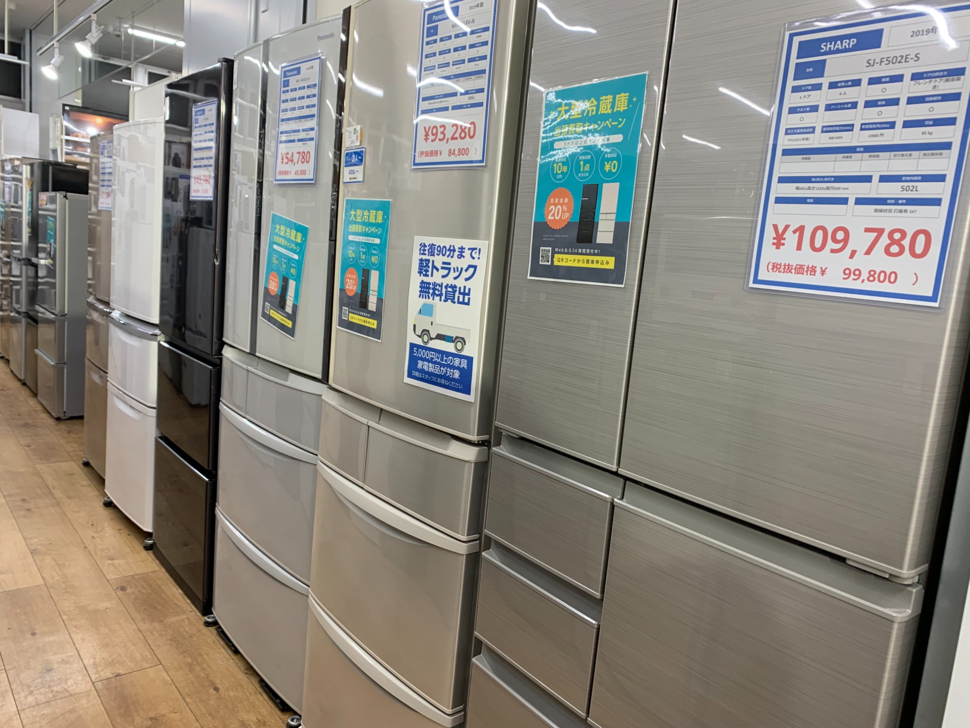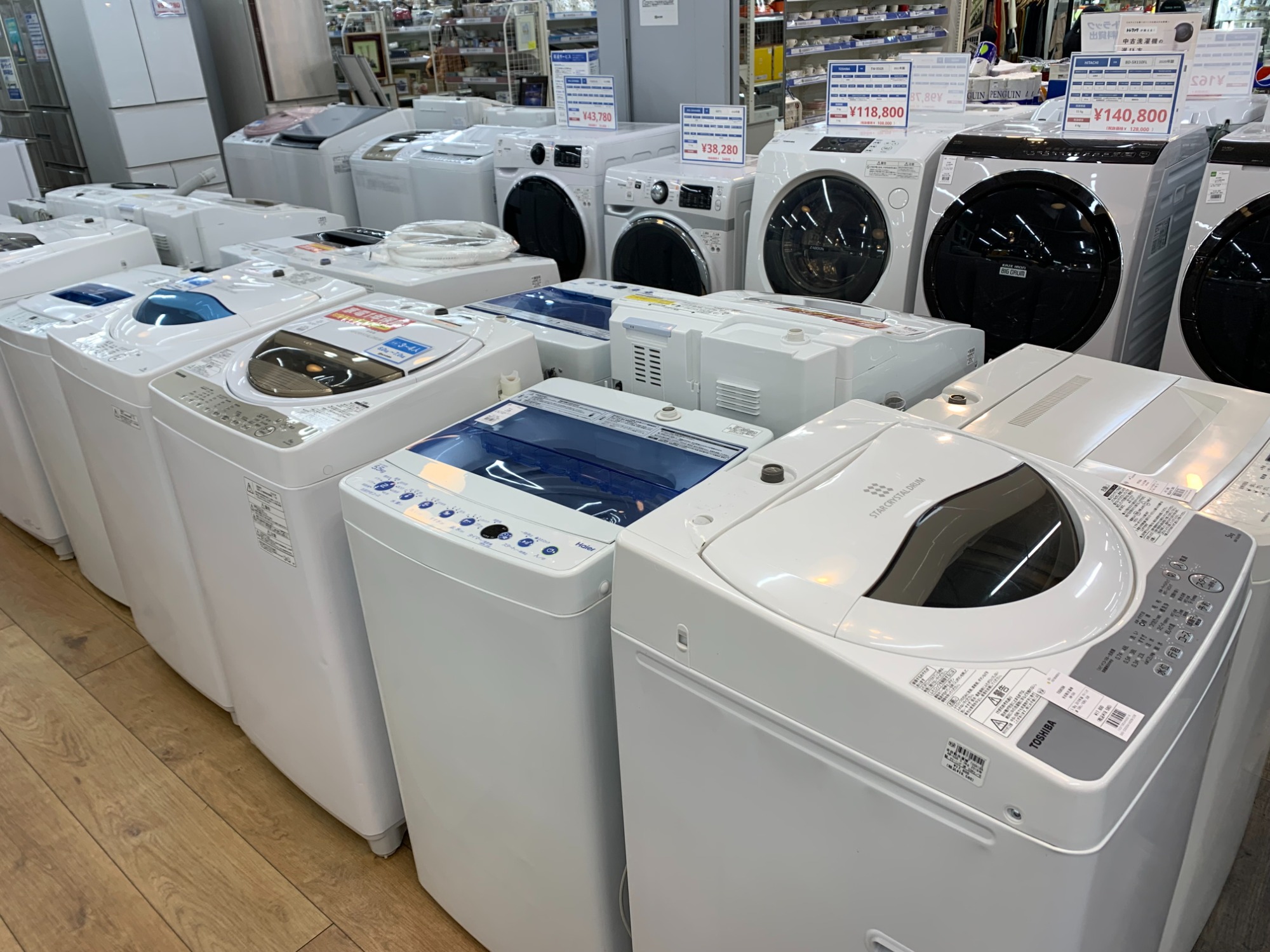冷蔵庫・洗濯機・エアコンなど中古家電、食器棚やソファーなど中古家具は多数展示しています。