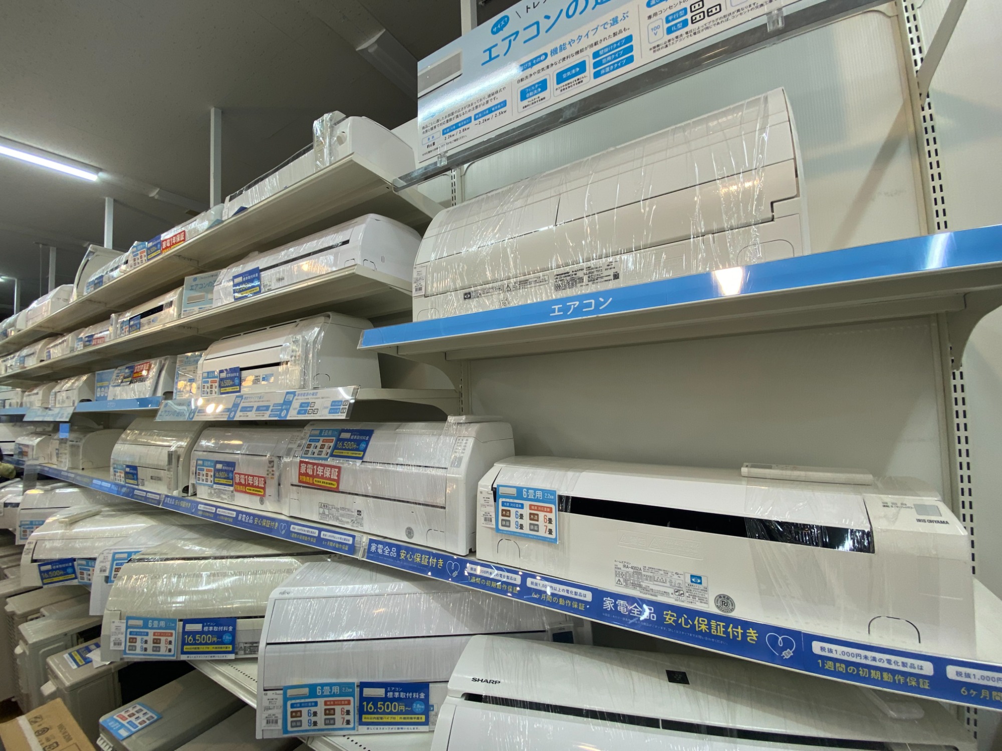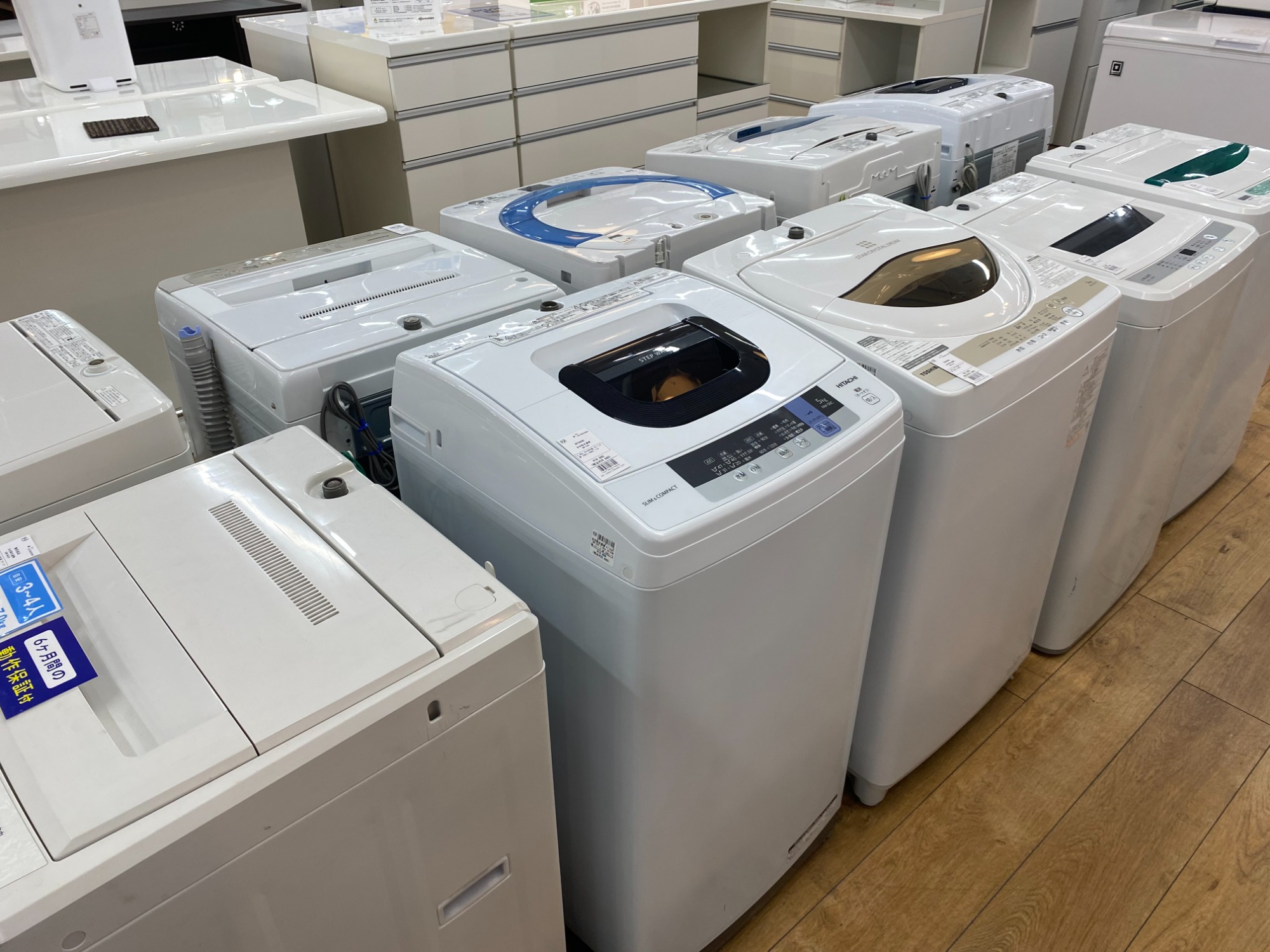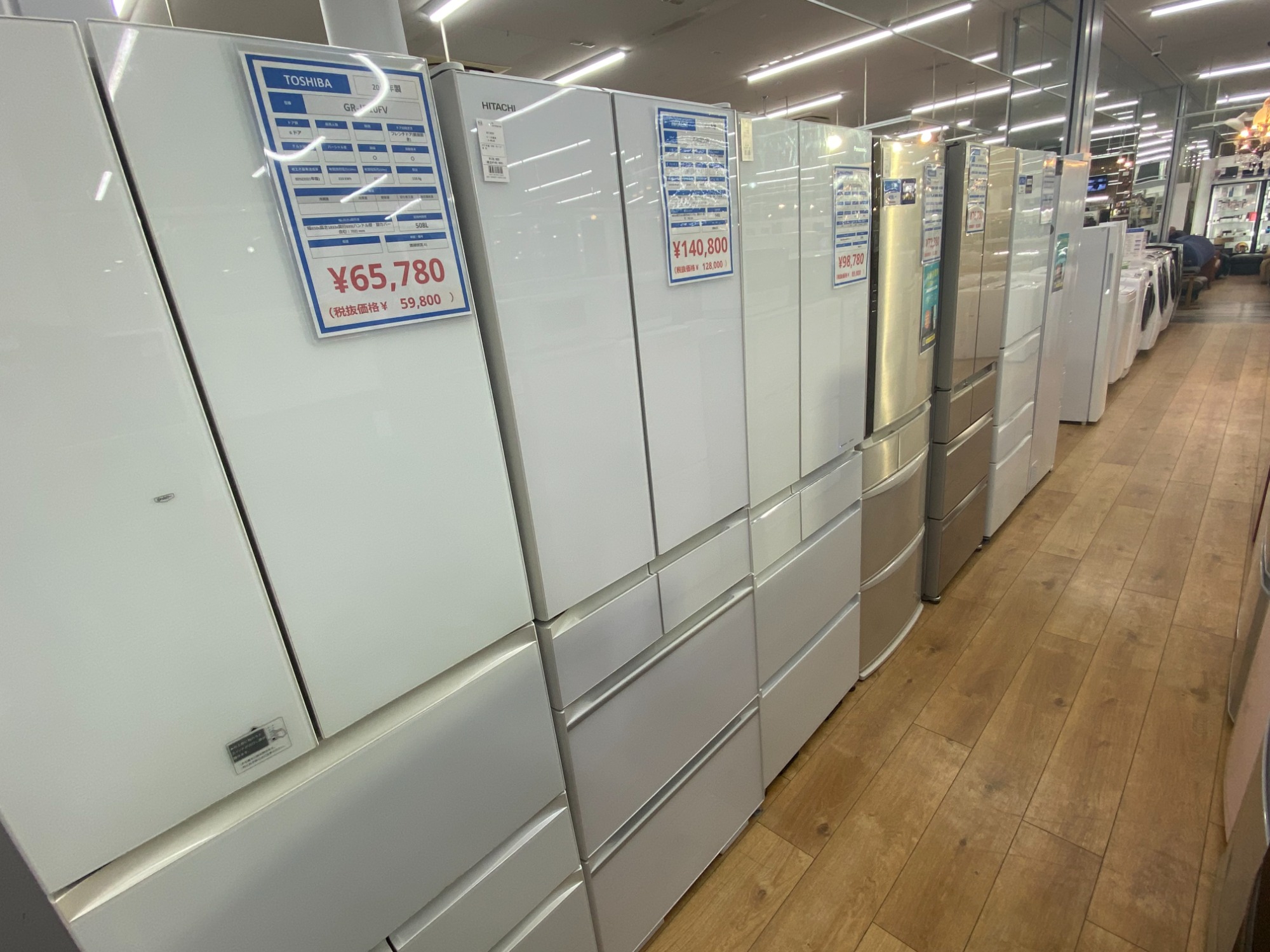 冷蔵庫・洗濯機・エアコンなど中古家電、食器棚やソファーなど中古家具は多数展示しております