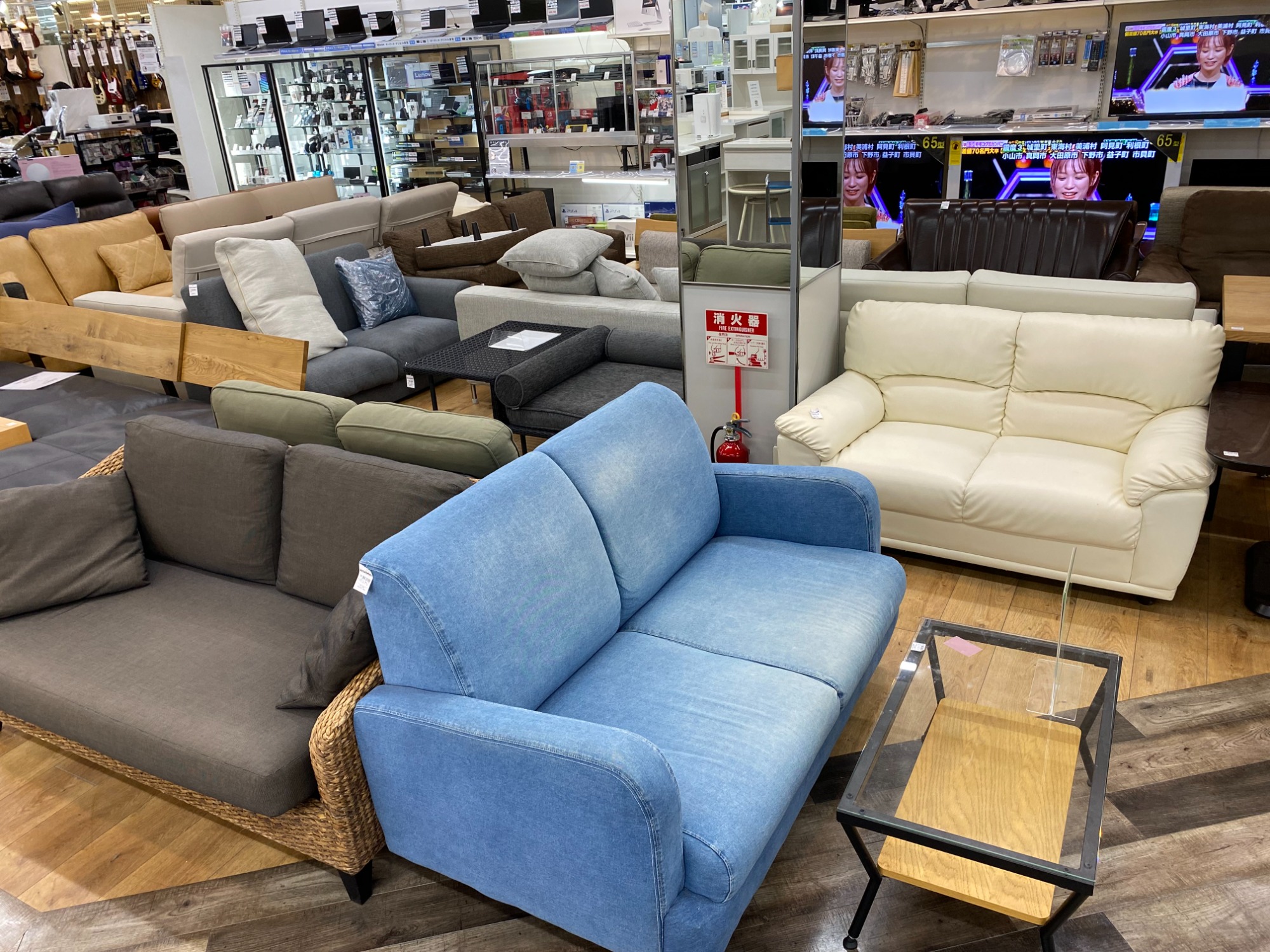 冷蔵庫・洗濯機・エアコンなど中古家電、食器棚やソファーなど中古家具は多数展示しています。