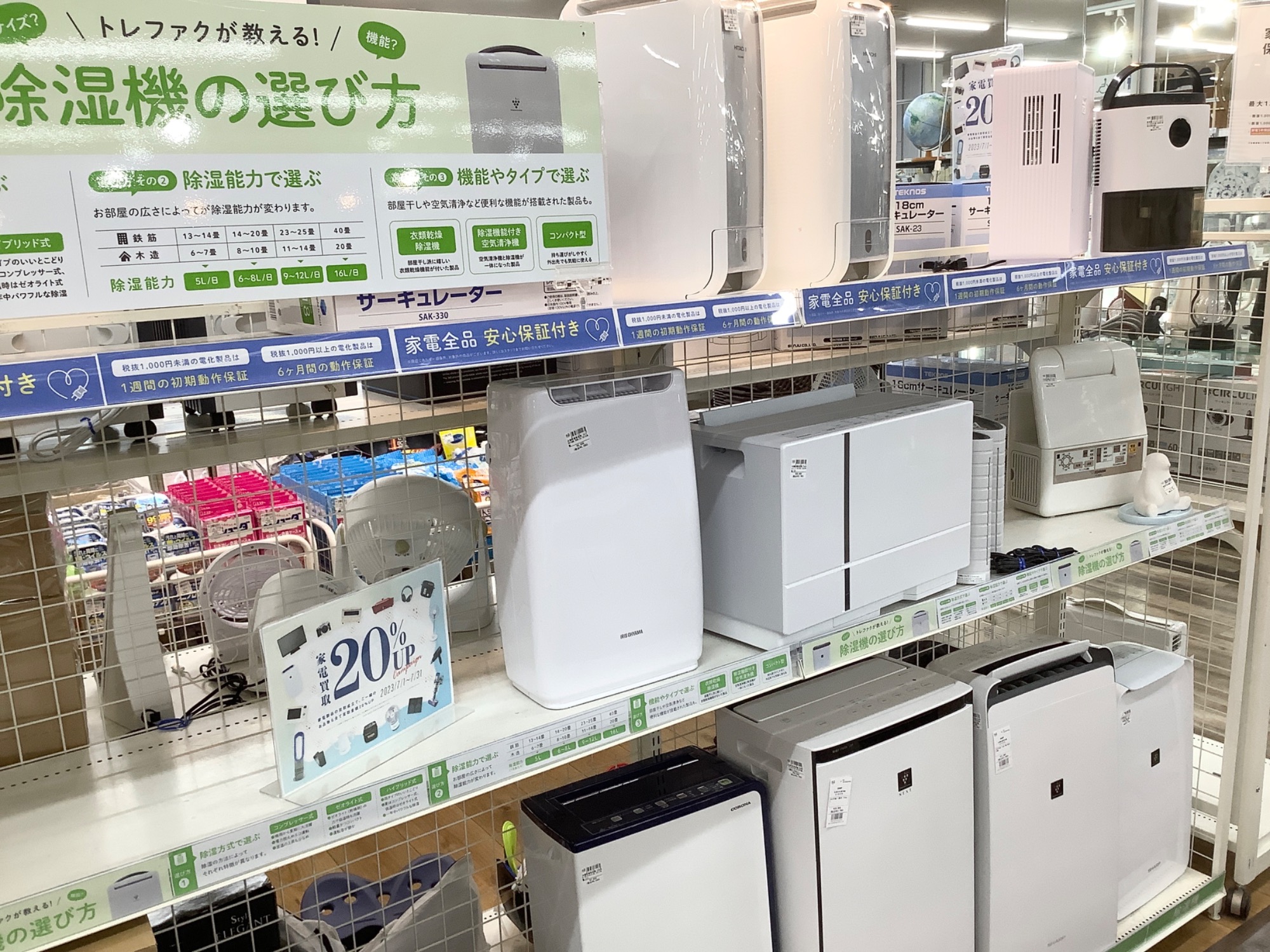 家電製品は最大1年間の保証付でアフターケアもお任せください。