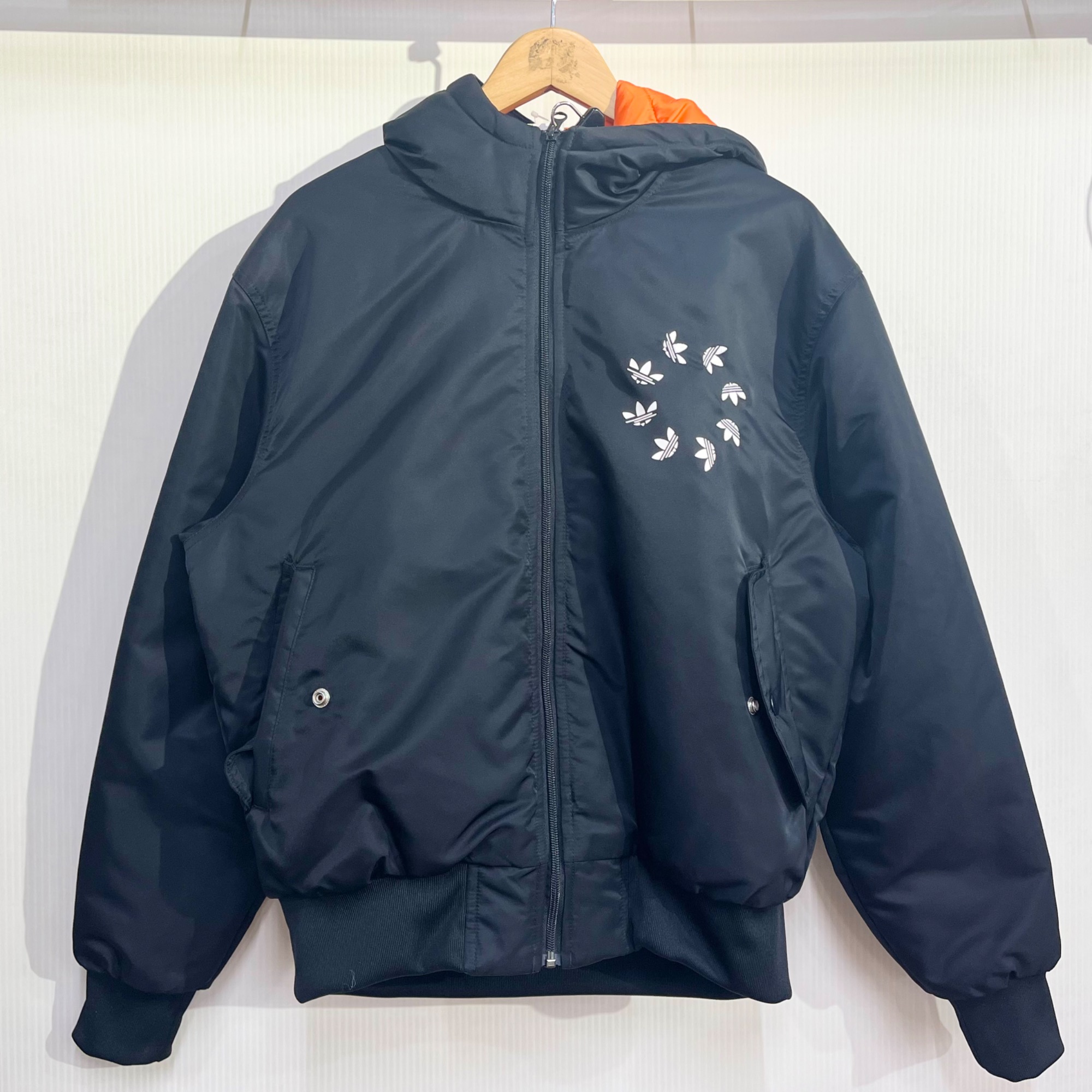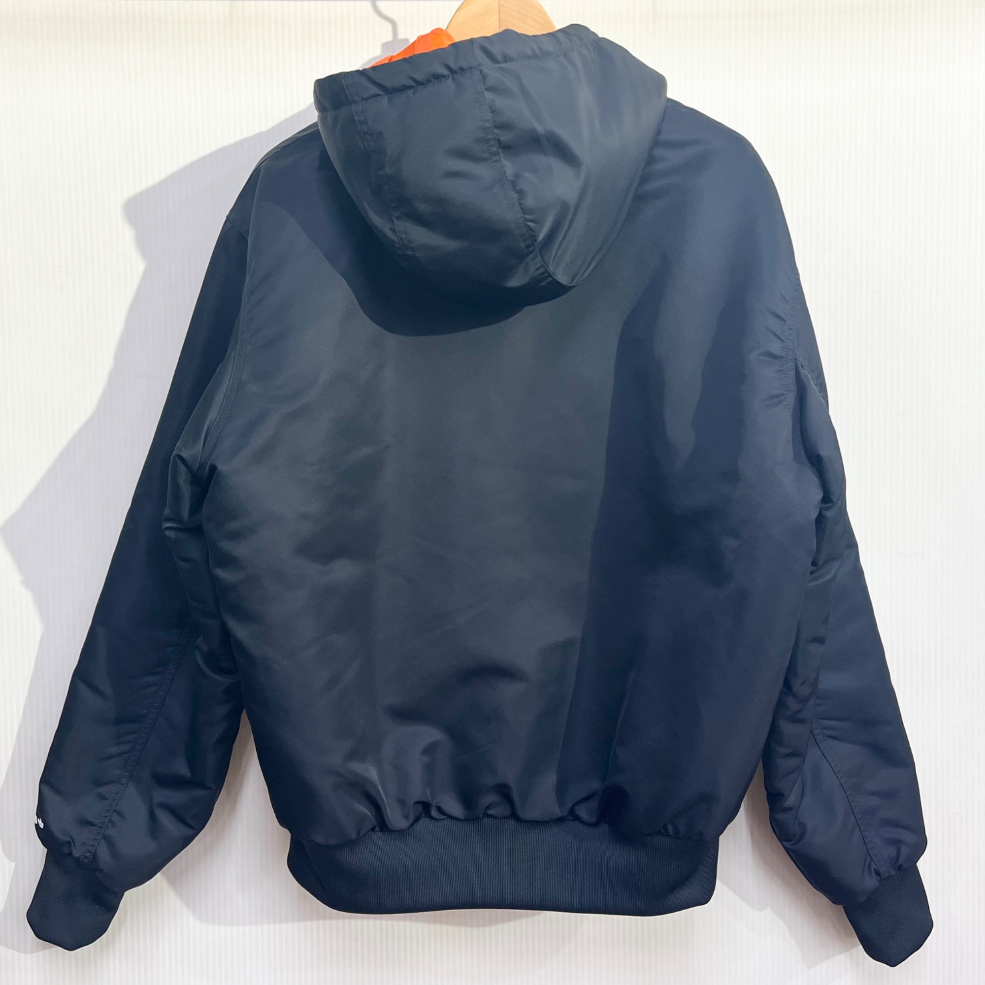 ロゴが円形になっている特徴的なデザインのフライトジャケット。