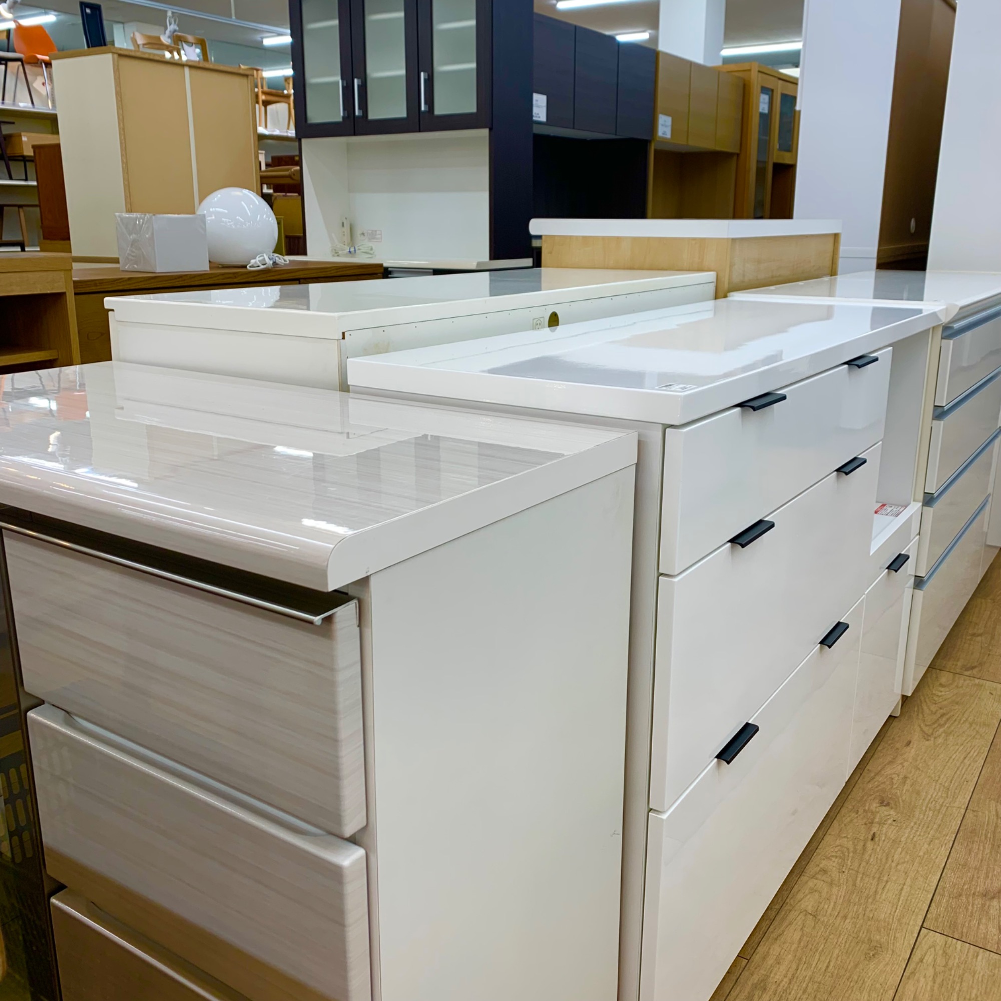 またこちらは新作の家具、レンジボードなどが展開しております!