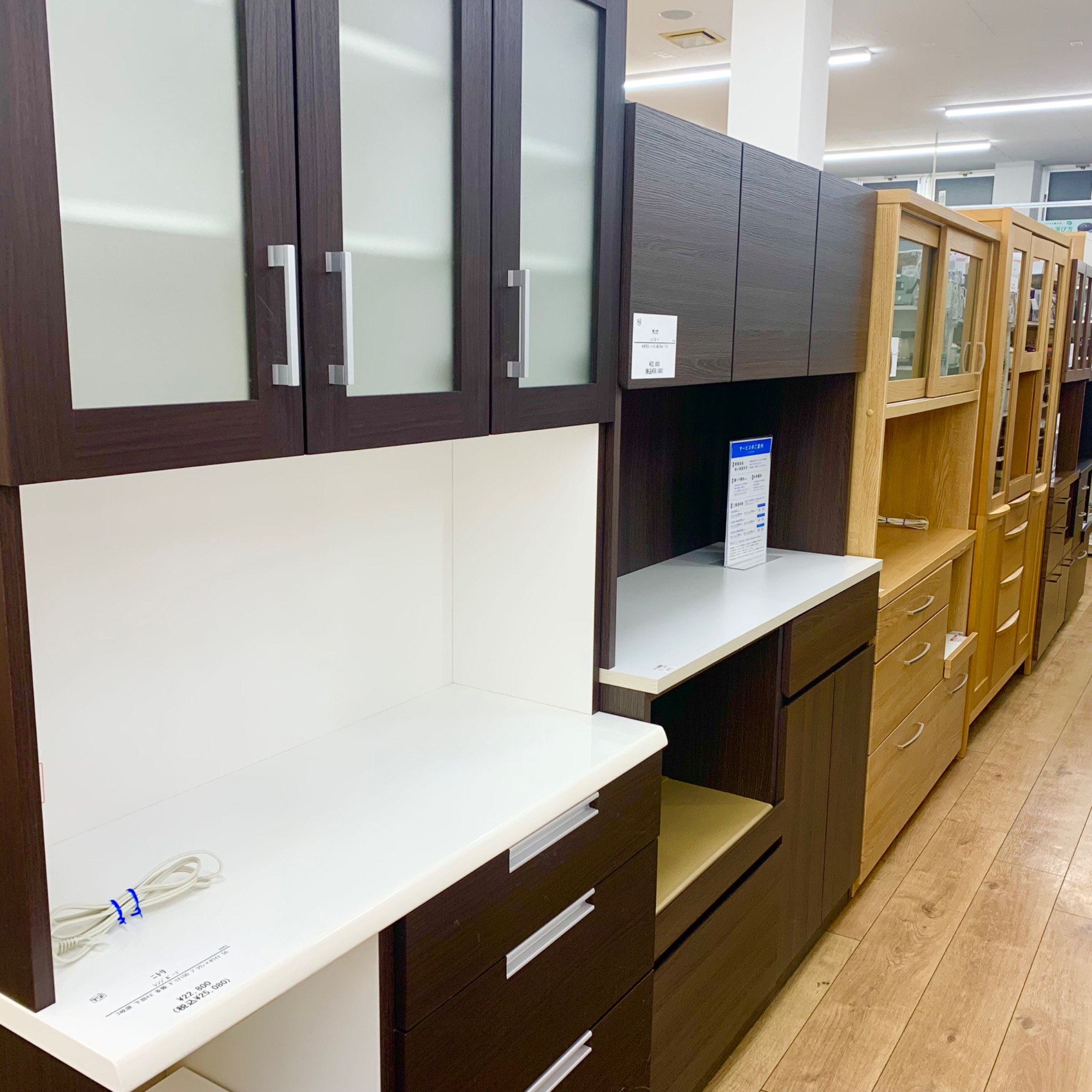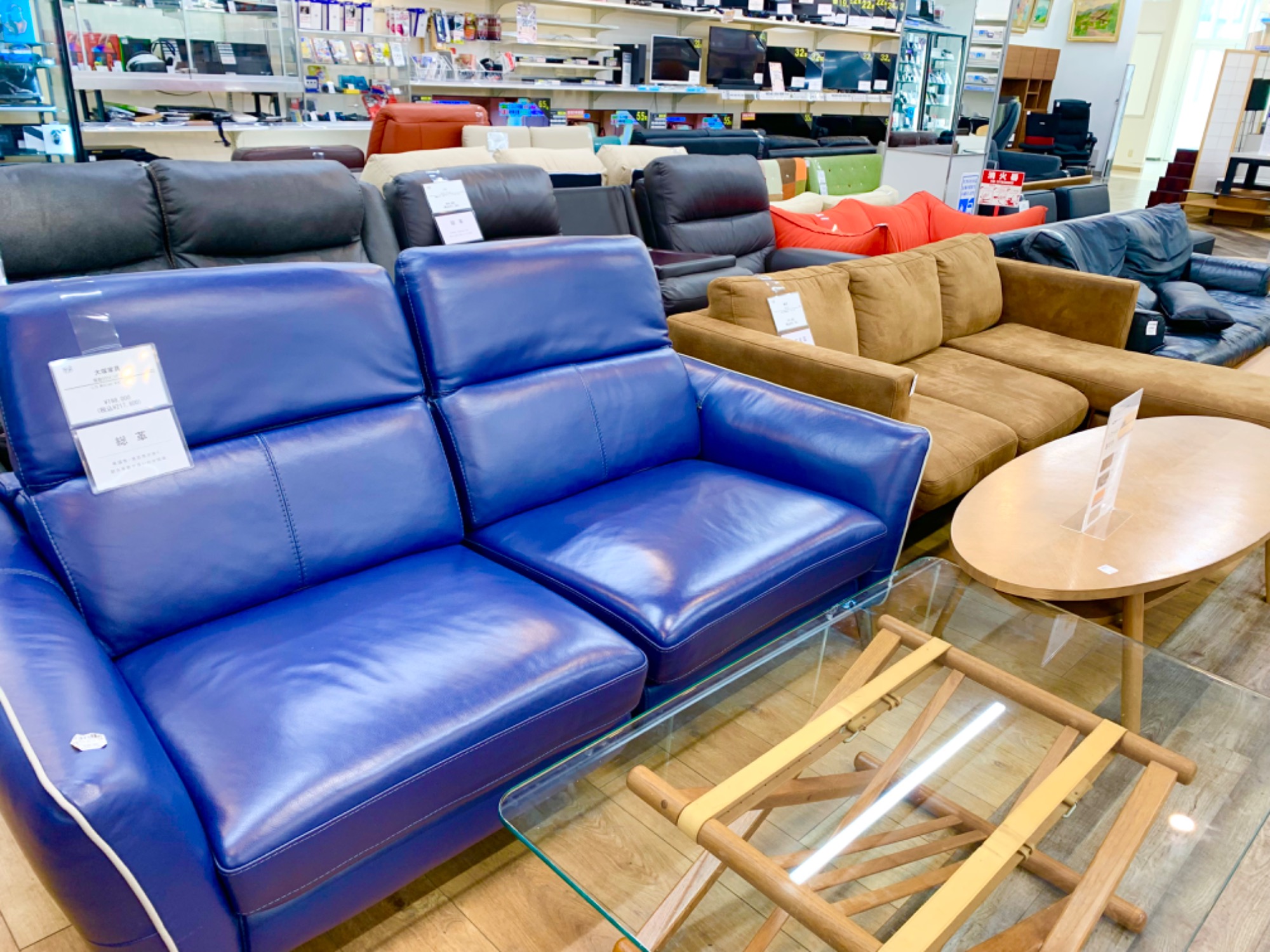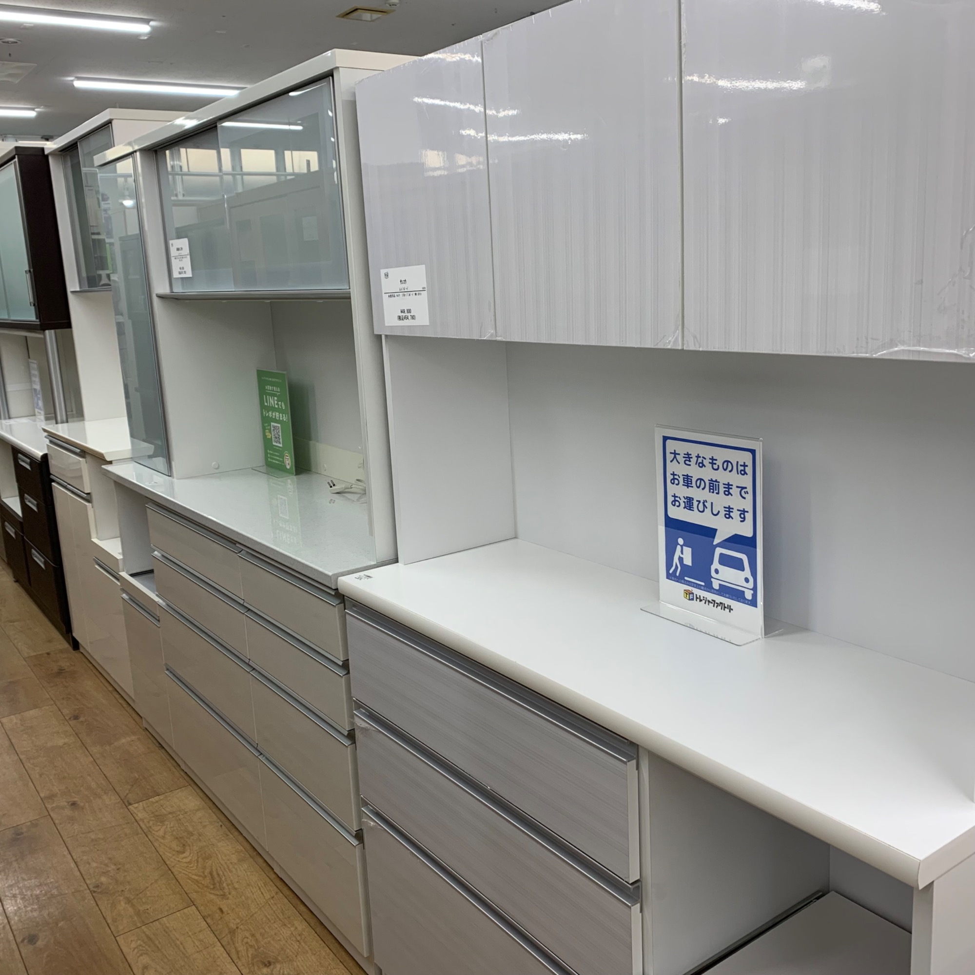 冷蔵庫・洗濯機・エアコンなど中古家電、食器棚やソファーなど中古家具は多数展示しています。