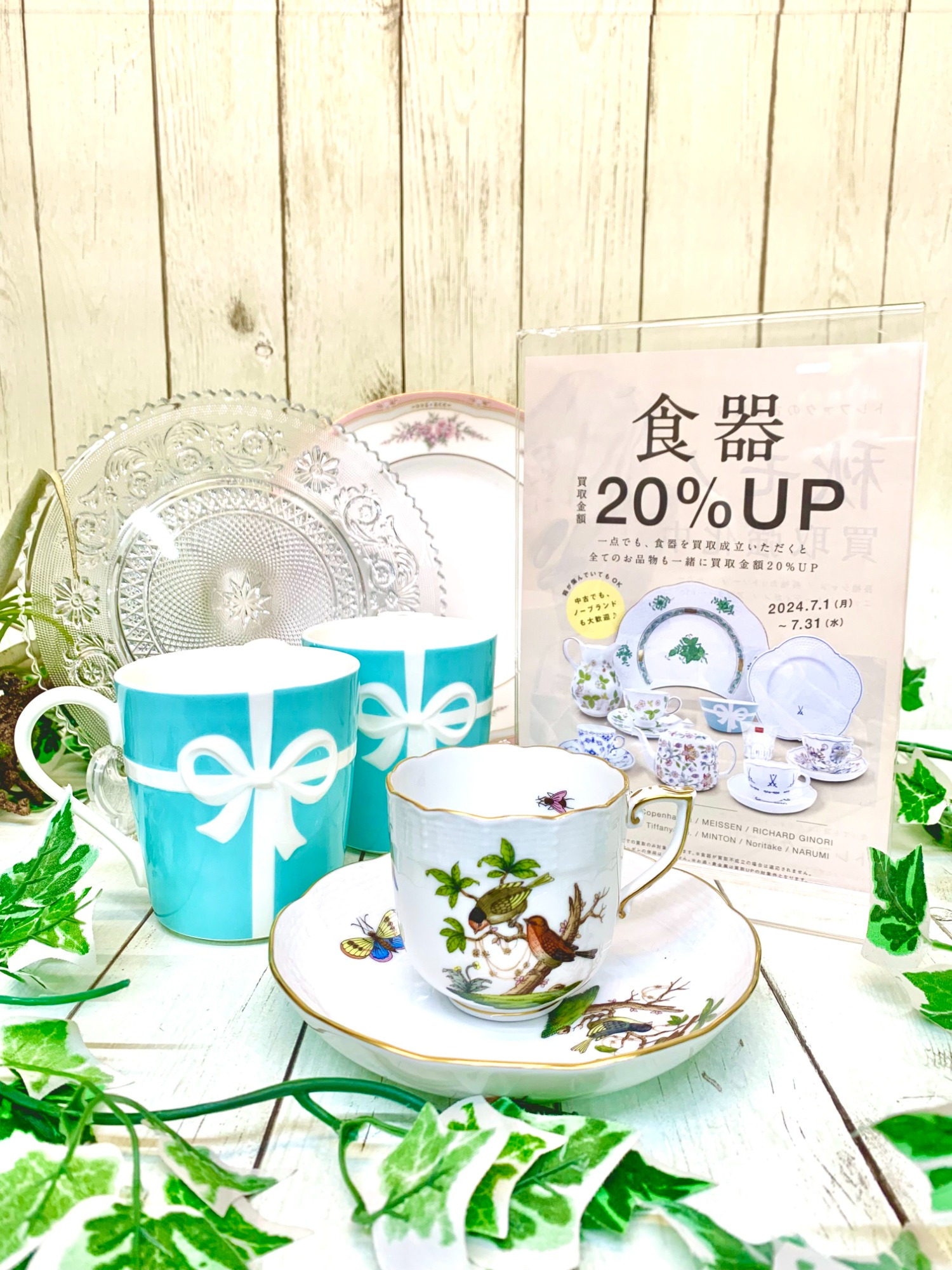 7月は食器買取20%UPキャンペーン!ブランド洋食器は中古でも大歓迎!ぜひお持ち込みください!