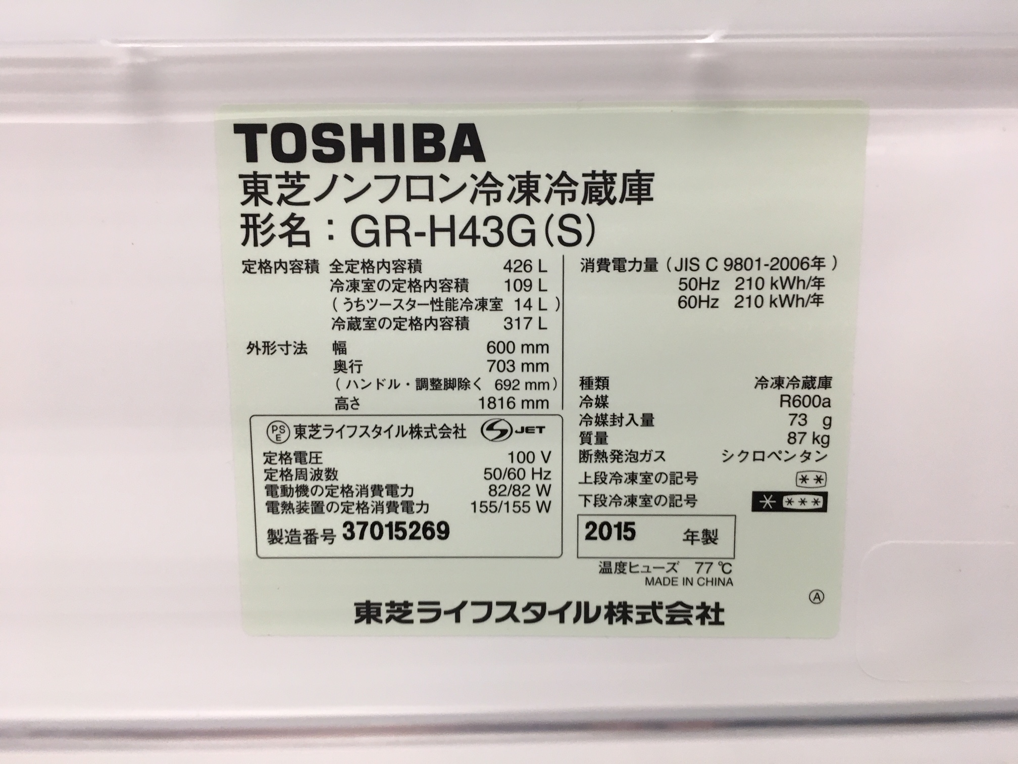 東芝の5ドア冷蔵庫が買取入荷致しました!【大船】