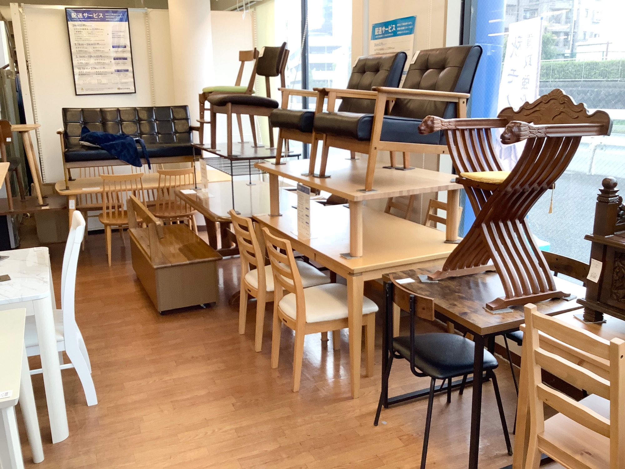 他にもダイニングテーブルやソファ、椅子などの家具を多数展示中です♪