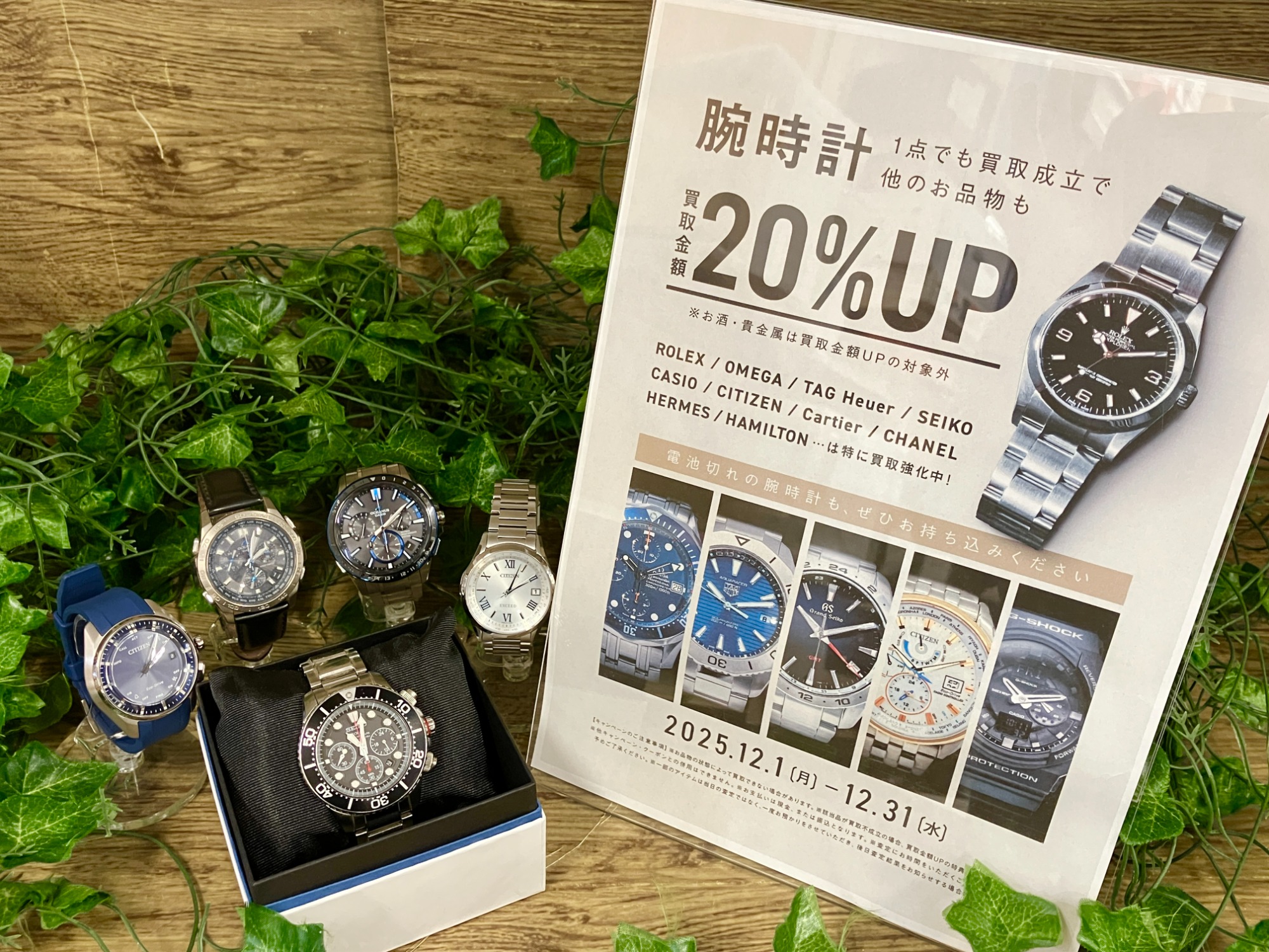 12月は腕時計買取20%UPキャンペーン!SEIKO,CITIZENなど、ぜひお持ち込みください!